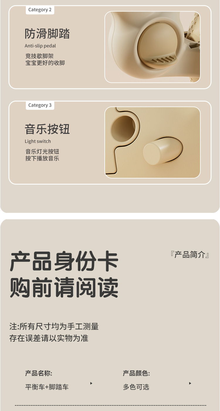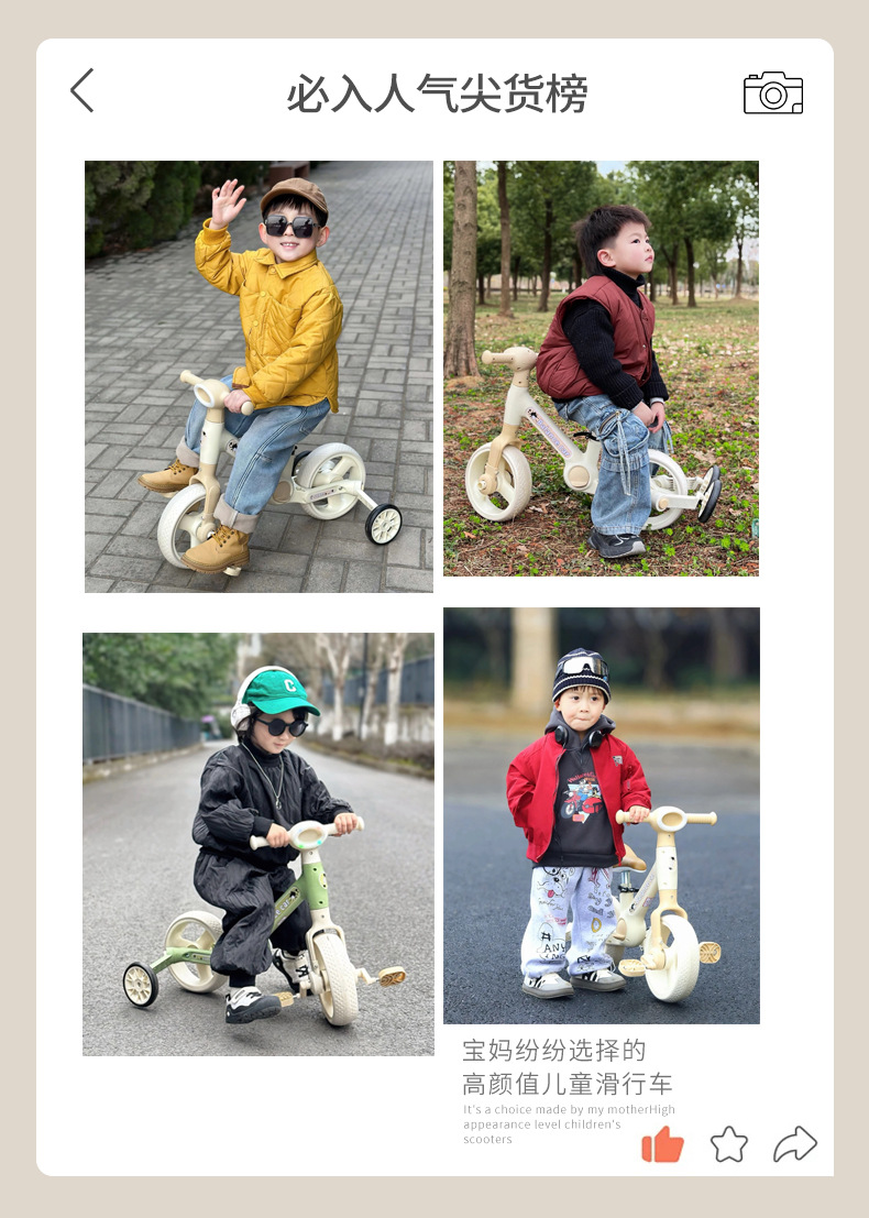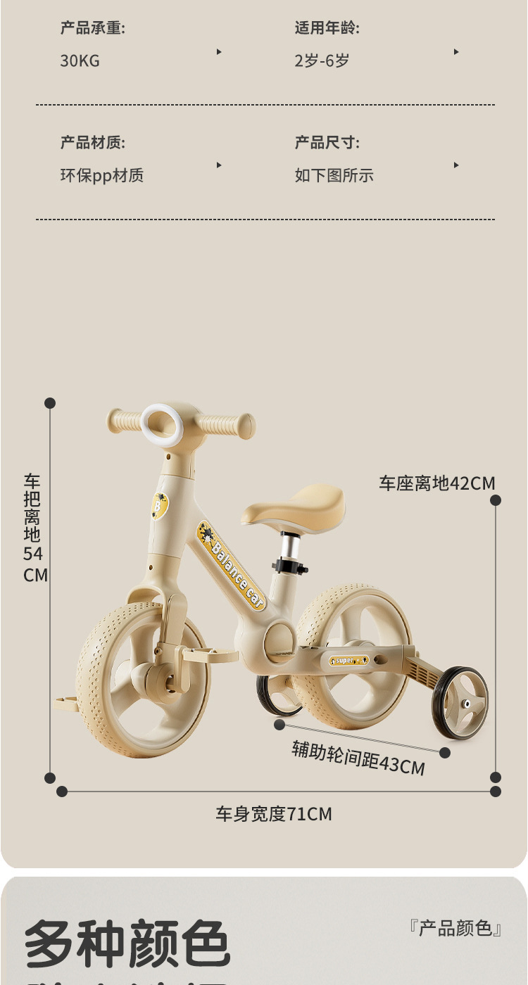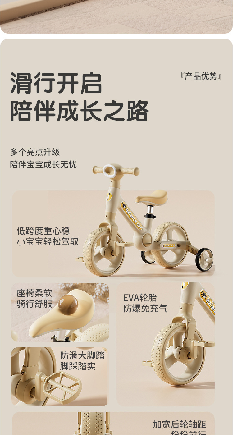 儿童平衡车多功能脚踏三轮车宝宝滑行步二合一带推把自行车滑行车