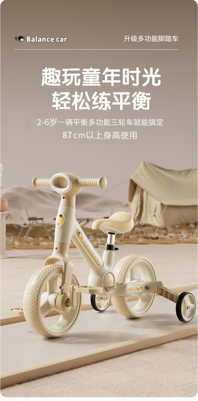 儿童三轮车3-6岁可调节多功能平衡车脚踏车男女宝宝滑步车防侧翻