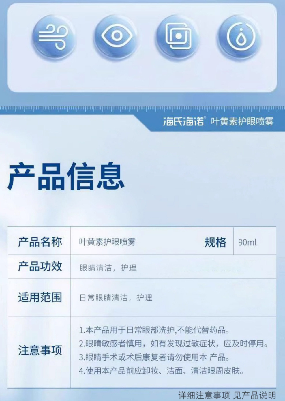 Haishi Hainuo ルテイン アイプロテクション スプレー アイウォッシュ 学生およびティーンエイジャー用 アイウォッシュ 90ml/ボトル