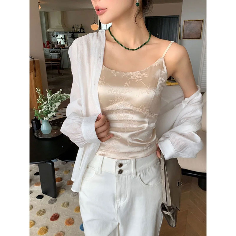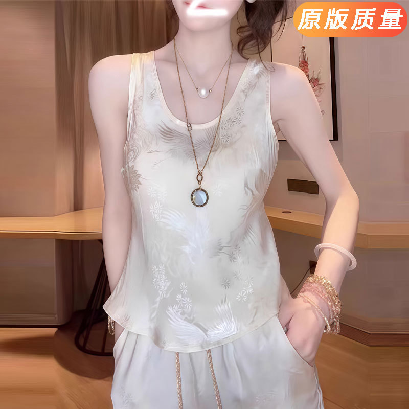 桑蚕丝真丝吊带背心新中式国风缎面提花内搭打底外穿无袖上衣女夏