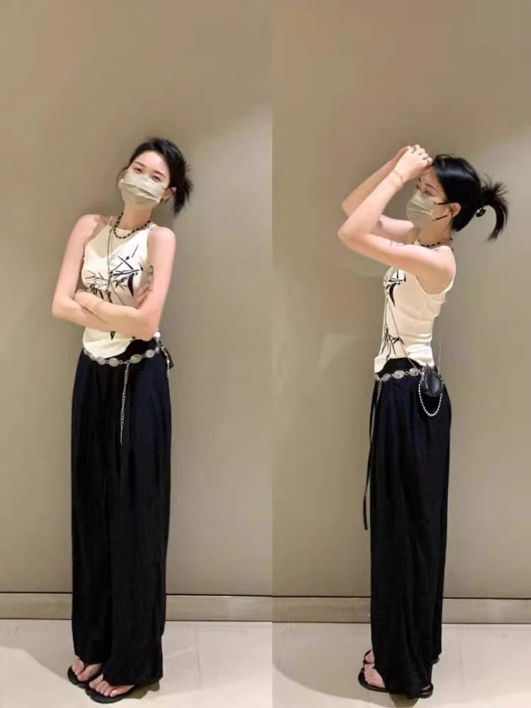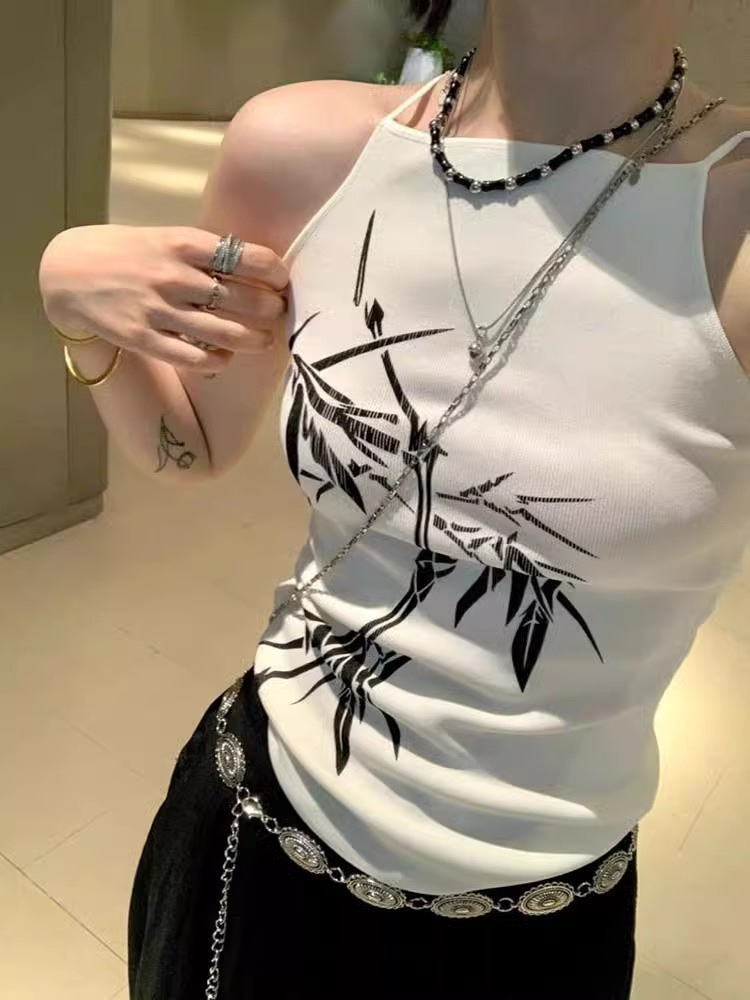 絶対アメリカ風新中国式胸パッド付きサテンプリントストラップはベスト女性の夏のスーツの中に美背をかけることができます。