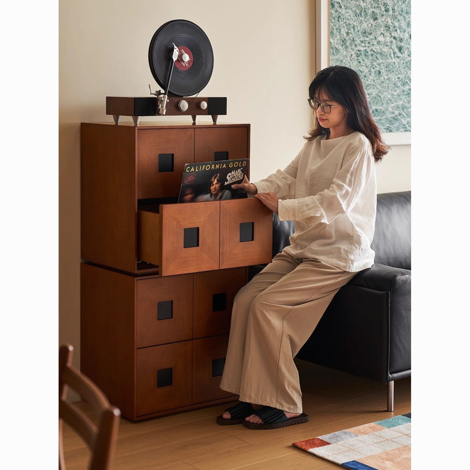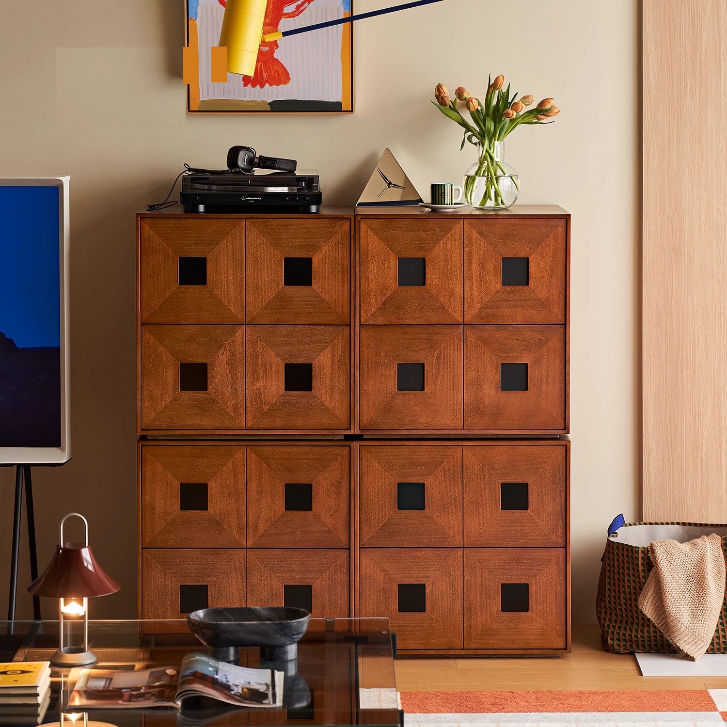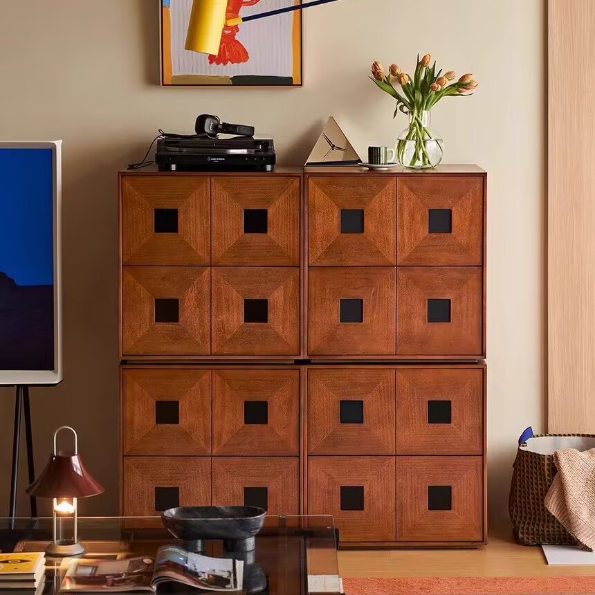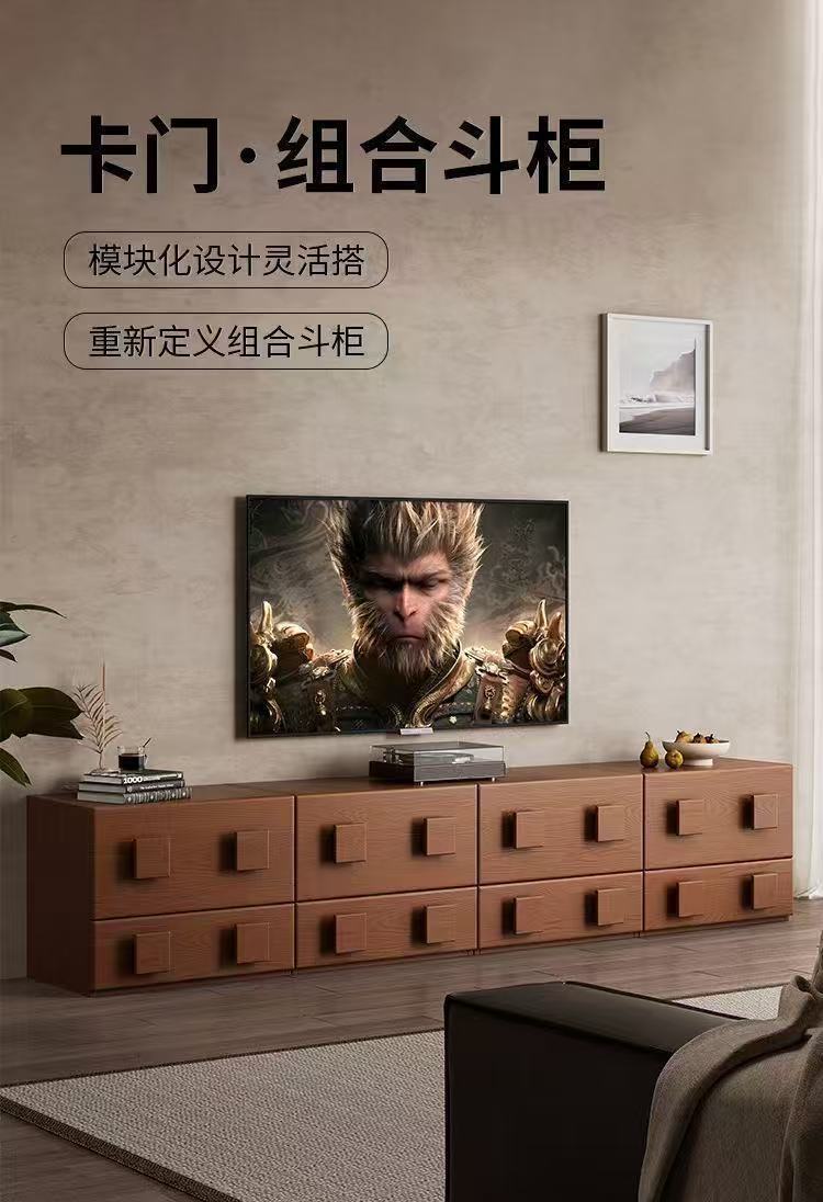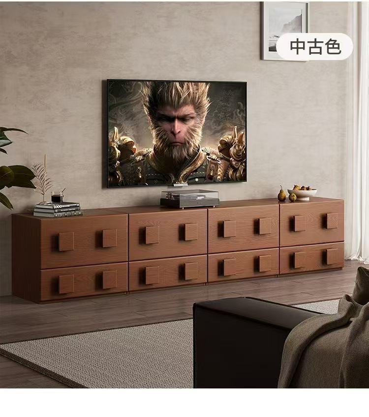 复古风中古全实木电视柜现代简约客厅卡门柜卧室储物组合模块收纳