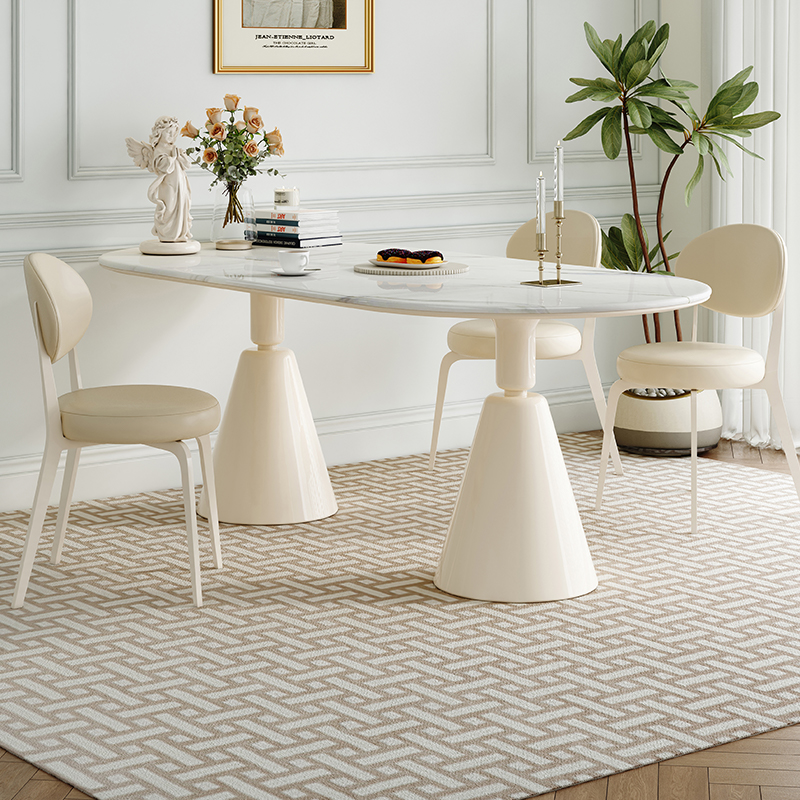 クリームスタイルのスレートダイニングテーブル家庭用インターネットセレブダイニングテーブルと椅子小さなアパート長方形レトロフレンチセントグラスダイニングテーブルと椅子