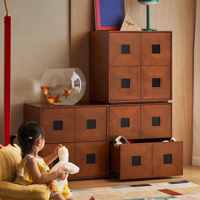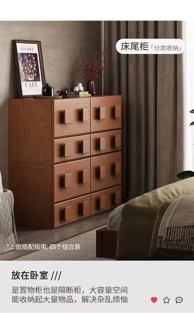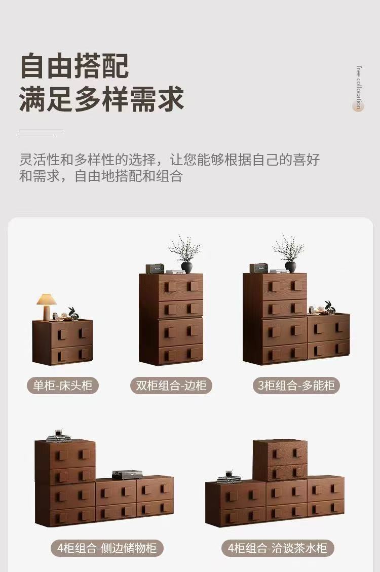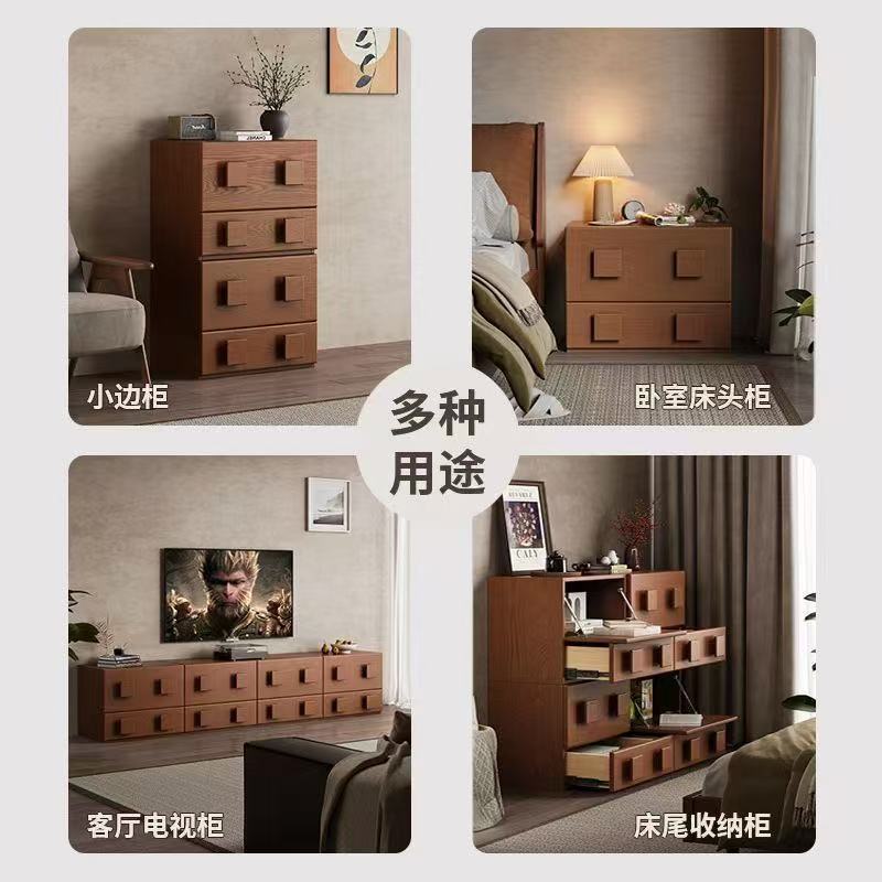 复古实木斗柜组合模块卡门柜家用客厅边柜中古法式卧室床边收纳柜