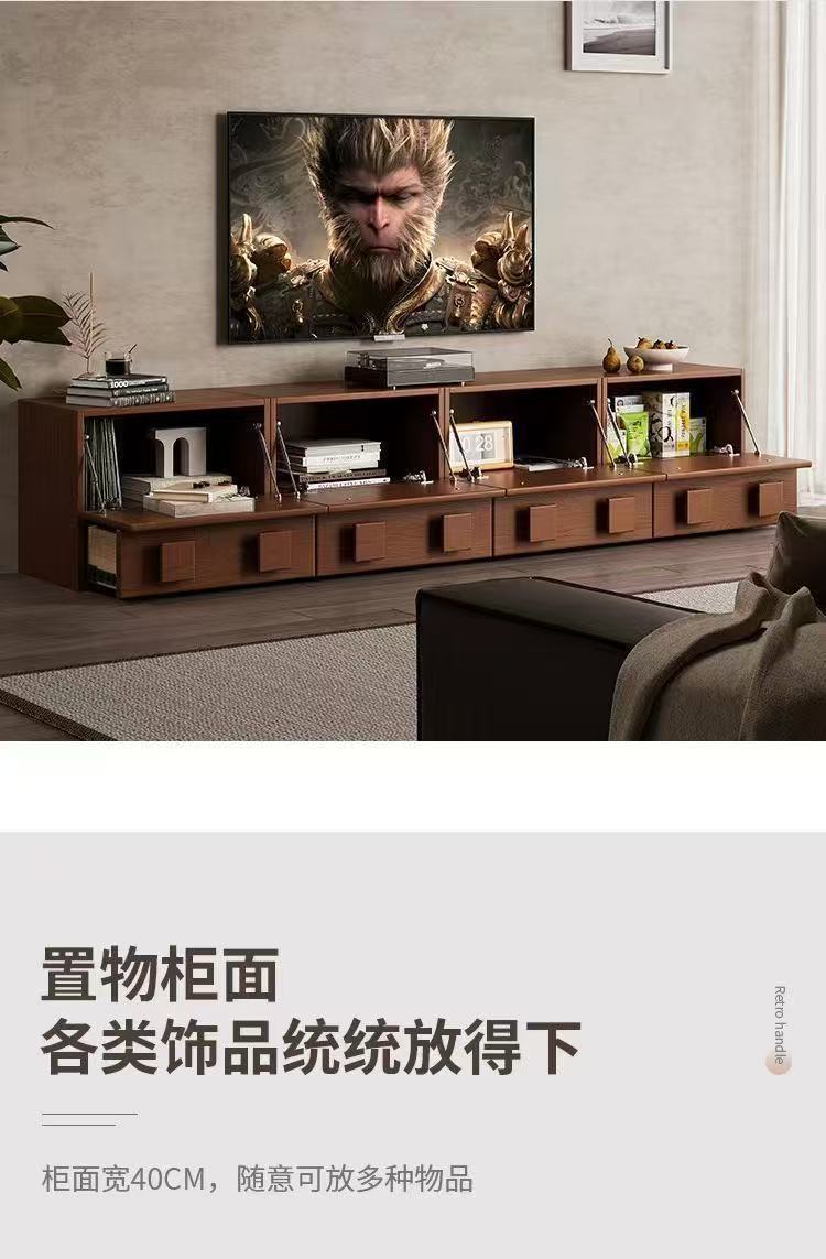 冬木实木电视柜客厅家用落地胡桃色中古卡门柜电视柜边柜组合斗柜