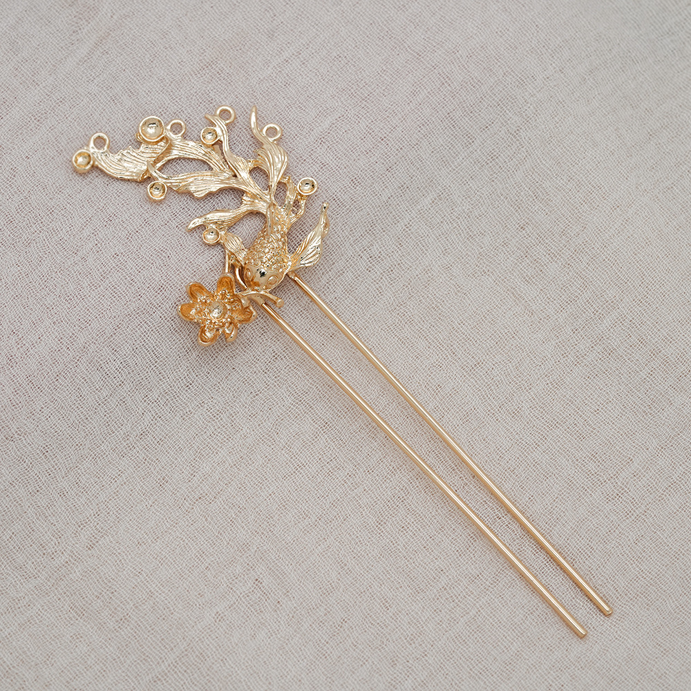 新古風宮廷漢服歩揺錦鯉花ヘアピンdiy秀禾頭飾り花嫁ヘアピン髪飾り