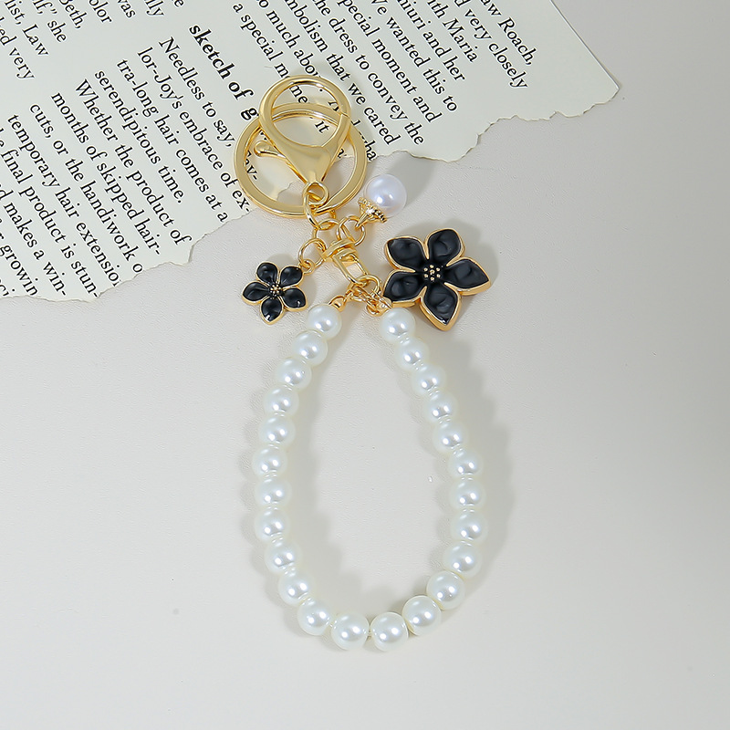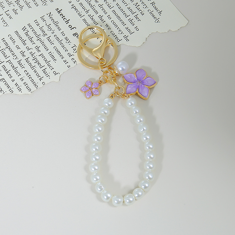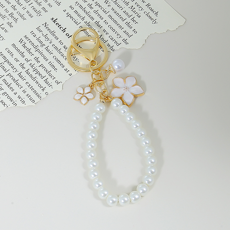 日系新型diyガラス模造真珠携帯ストラップ手作りビーズキーホルダーチェーン