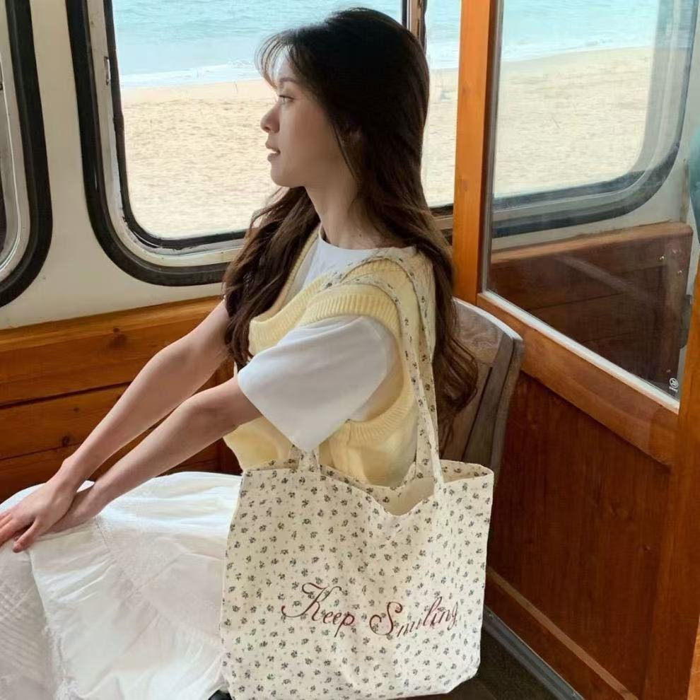 韓国版insフランスレトロな花の包みの小さい衆の月の光の青いアルファベットの肩掛けの薄いタイプの清新な綿布の女性のカバン