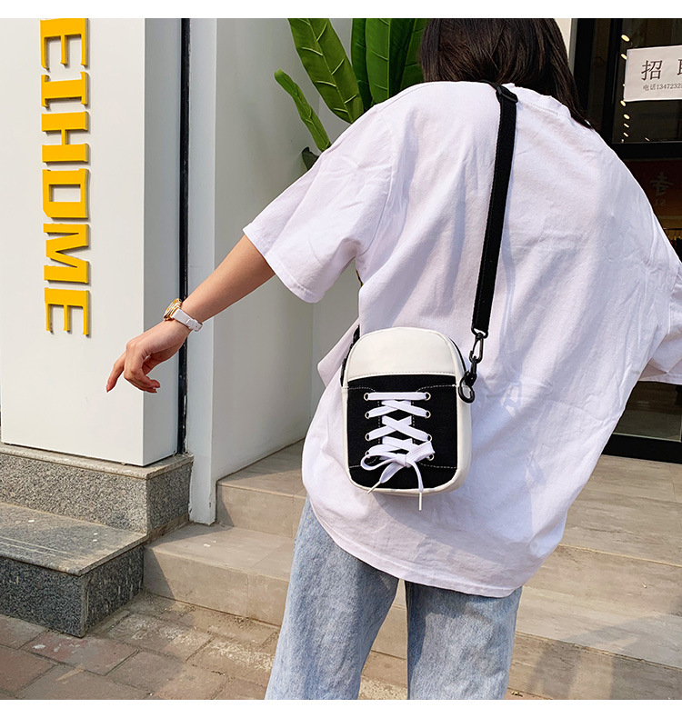 2025 インターネットセレブと同じスタイルの韓国語版 ins スプライシングキャンバスメッセンジャーバッグレディースバッグ新入生ショルダーバッグ