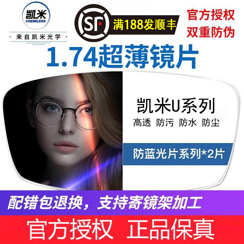 凱米u 2レンズメガネ超薄金u 6ブルーレイ非球面高さ数近視レンズ加工