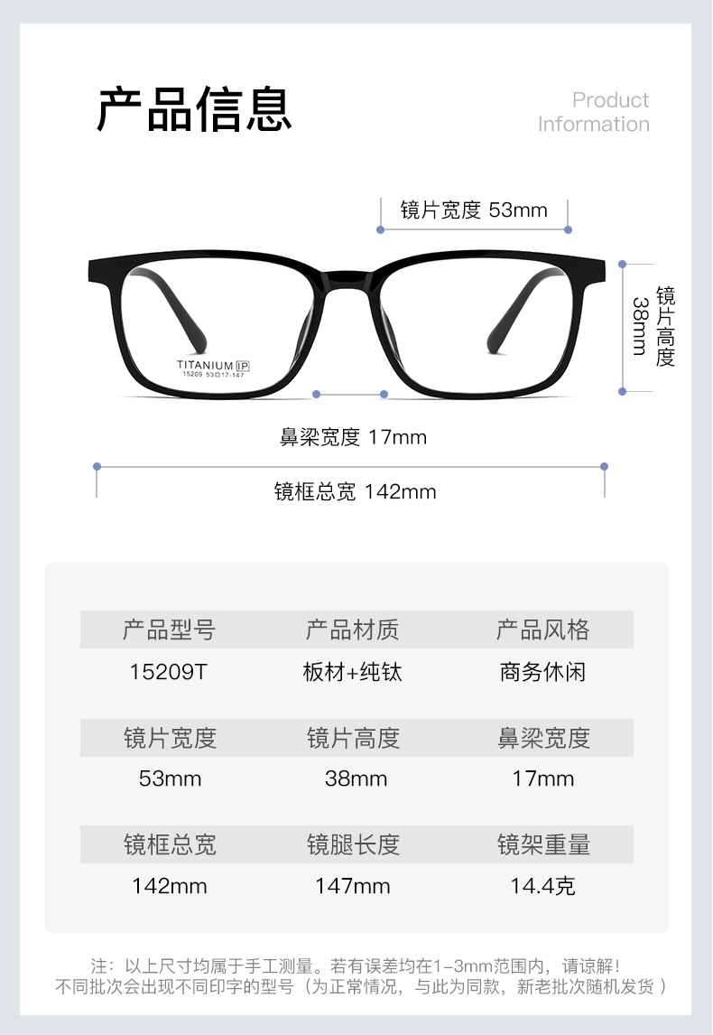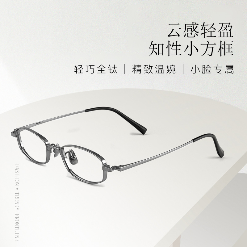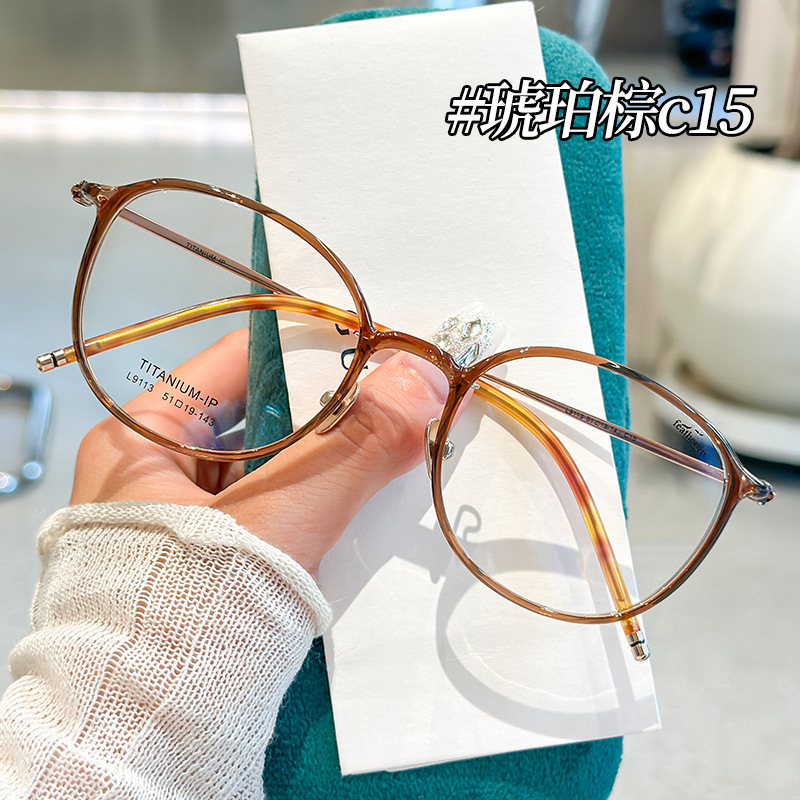 丹陽カリンと同じスタイルのチタンフレーム、スクエア&ラウンドフレーム、TR90純チタンメガネ、近視女性用、ノーメイクでもOK、度付き対応、丸顔向け9113