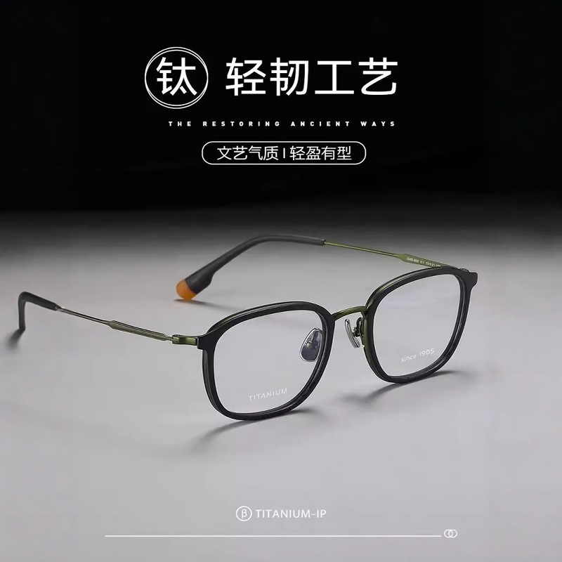 808 Douyin 人気モデル 192 同じスタイル ダークナイト グリーン 超軽量 レトロ 純チタンフレーム 男女兼用 近視メガネフレーム 丹陽