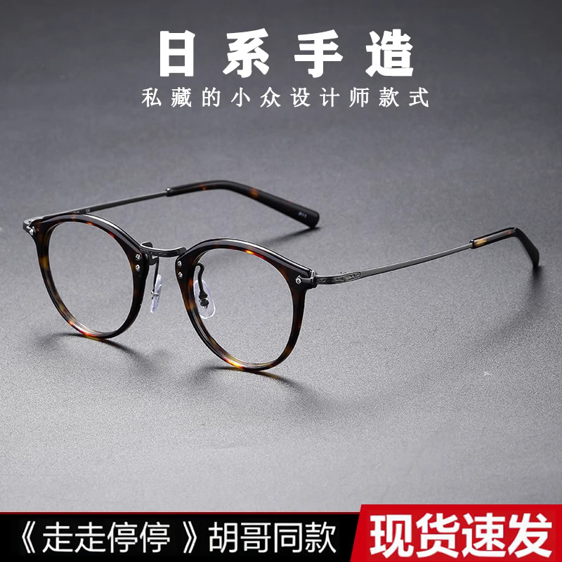 丹陽徐正と同じスタイルの超軽量レトロ手作り板材べっ甲柄メンズ小顔丸型近視メガネフレーム505