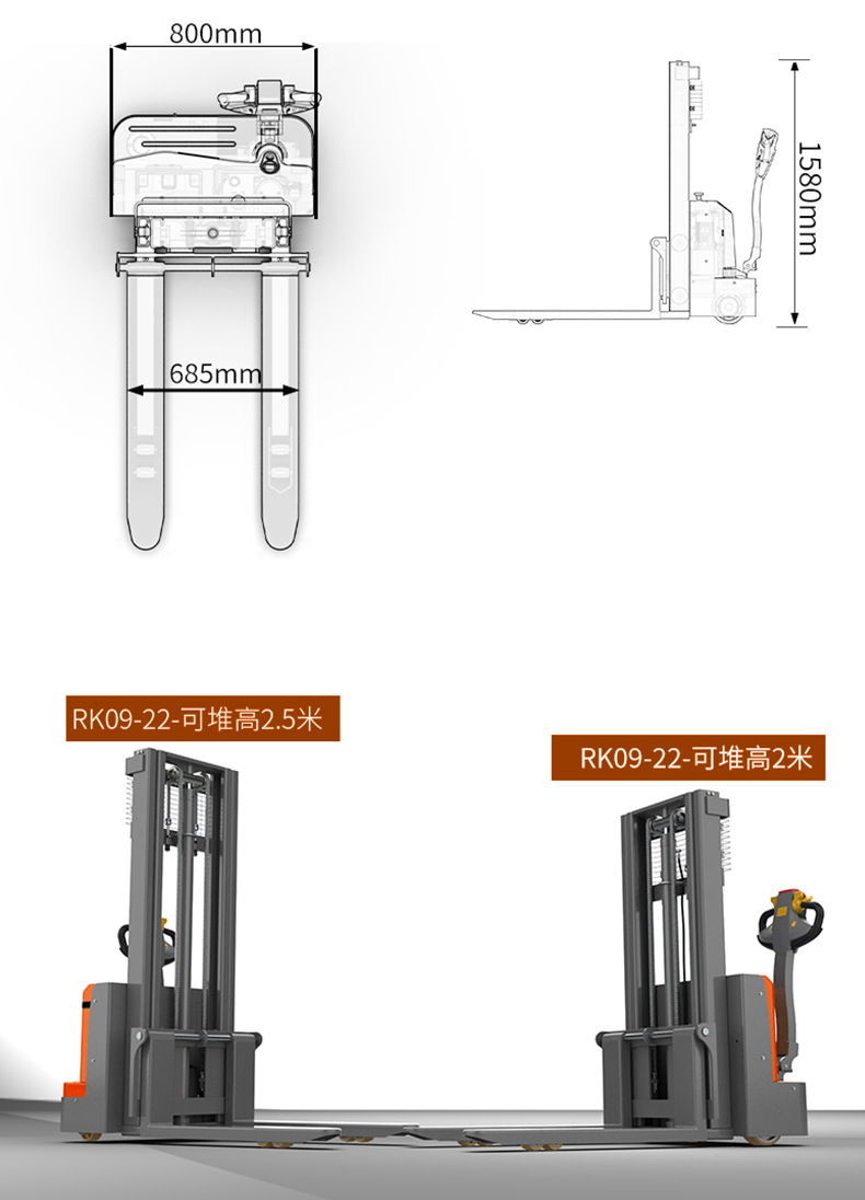 全電動歩行式スタッカ1.2トン倉庫運搬スタッカリチウム電池小型電動昇降フォークリフト