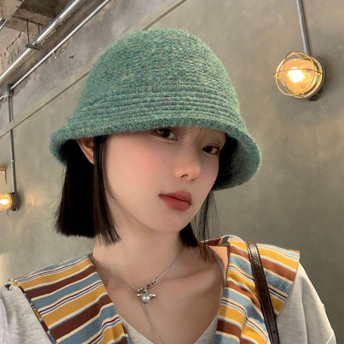 日系黑色针织渔夫帽女秋冬高级感防寒毛线帽显脸小大头围水桶帽子