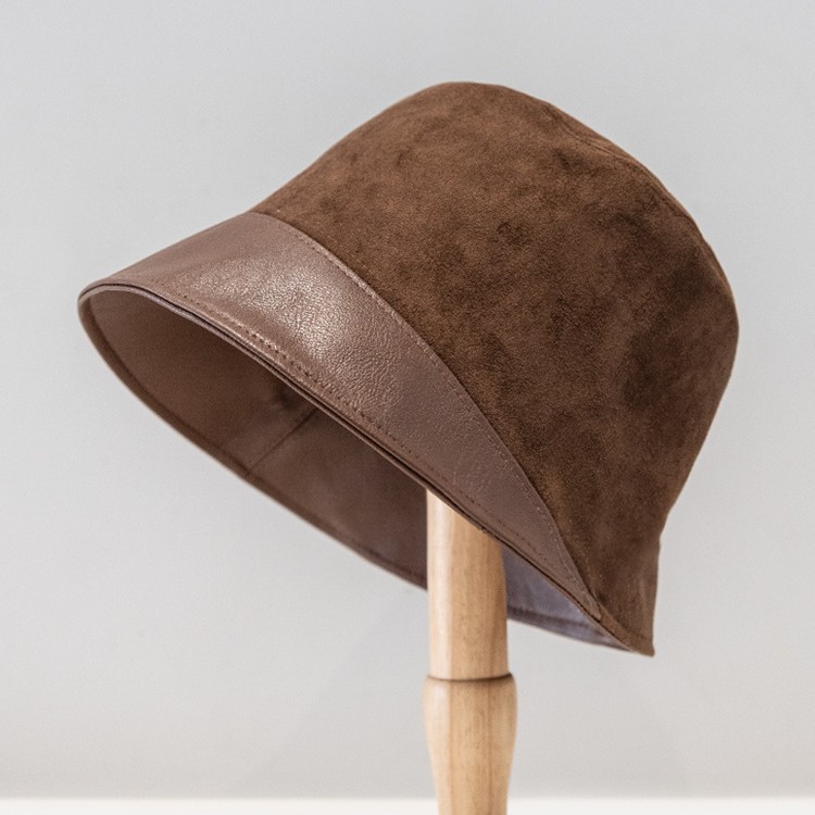 小さなPU皮質漁師帽子男女秋冬韓版百合日系街頭復古バケツ帽子盆帽潮