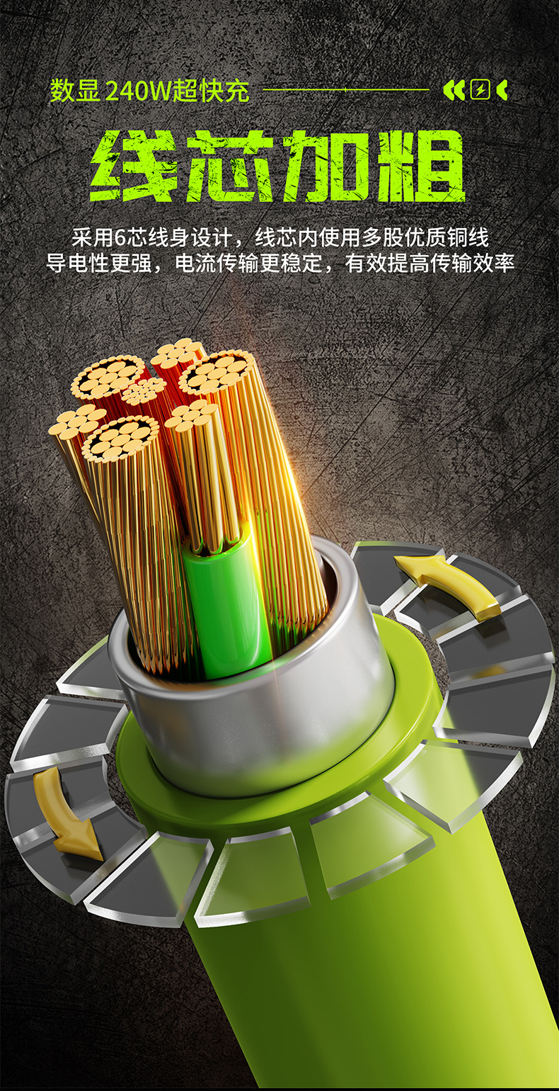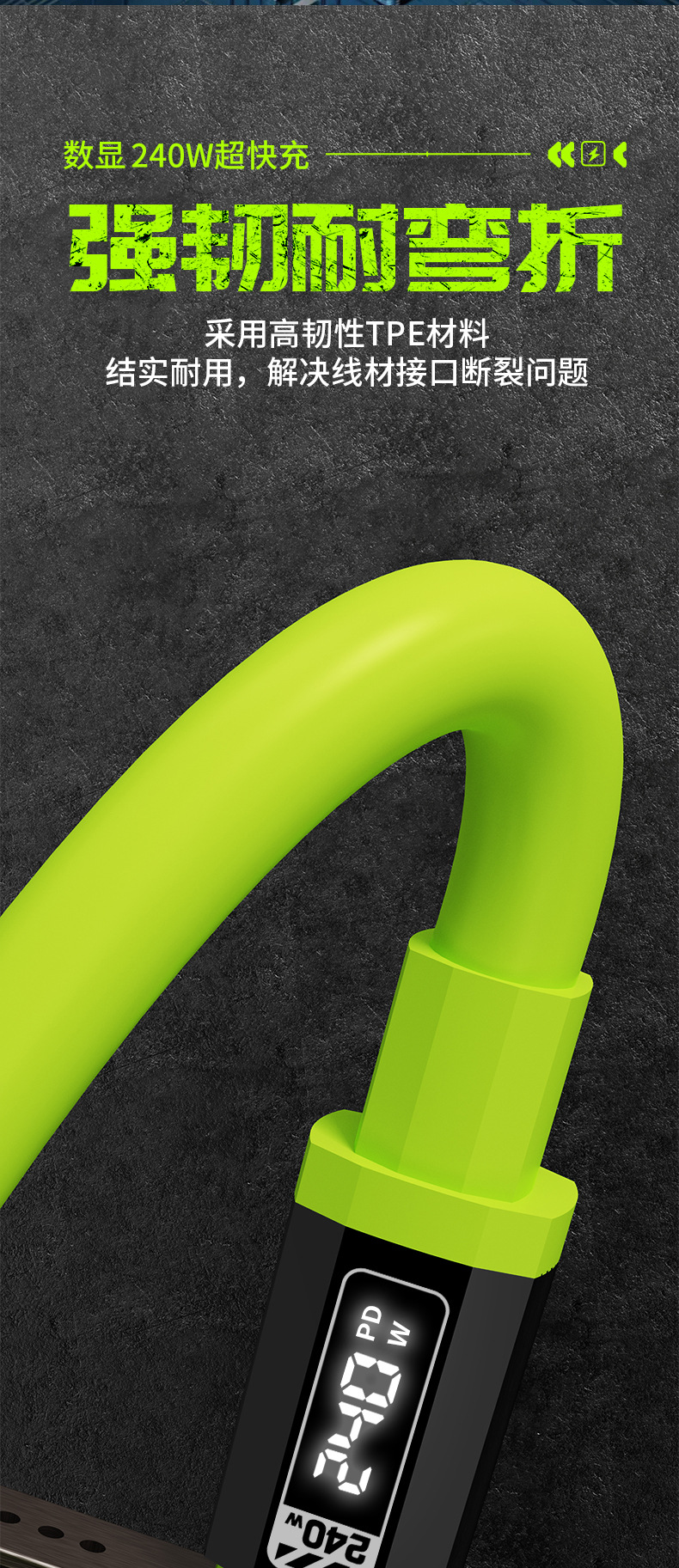 加粗240W手机数据线智能闪充大功率快充适用苹果华为typec充电线