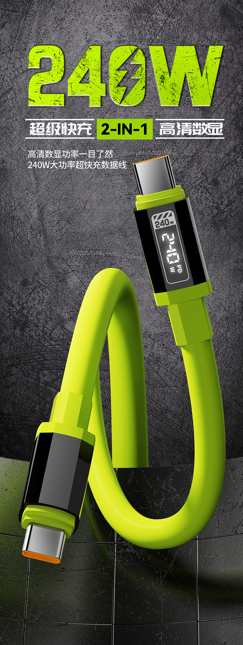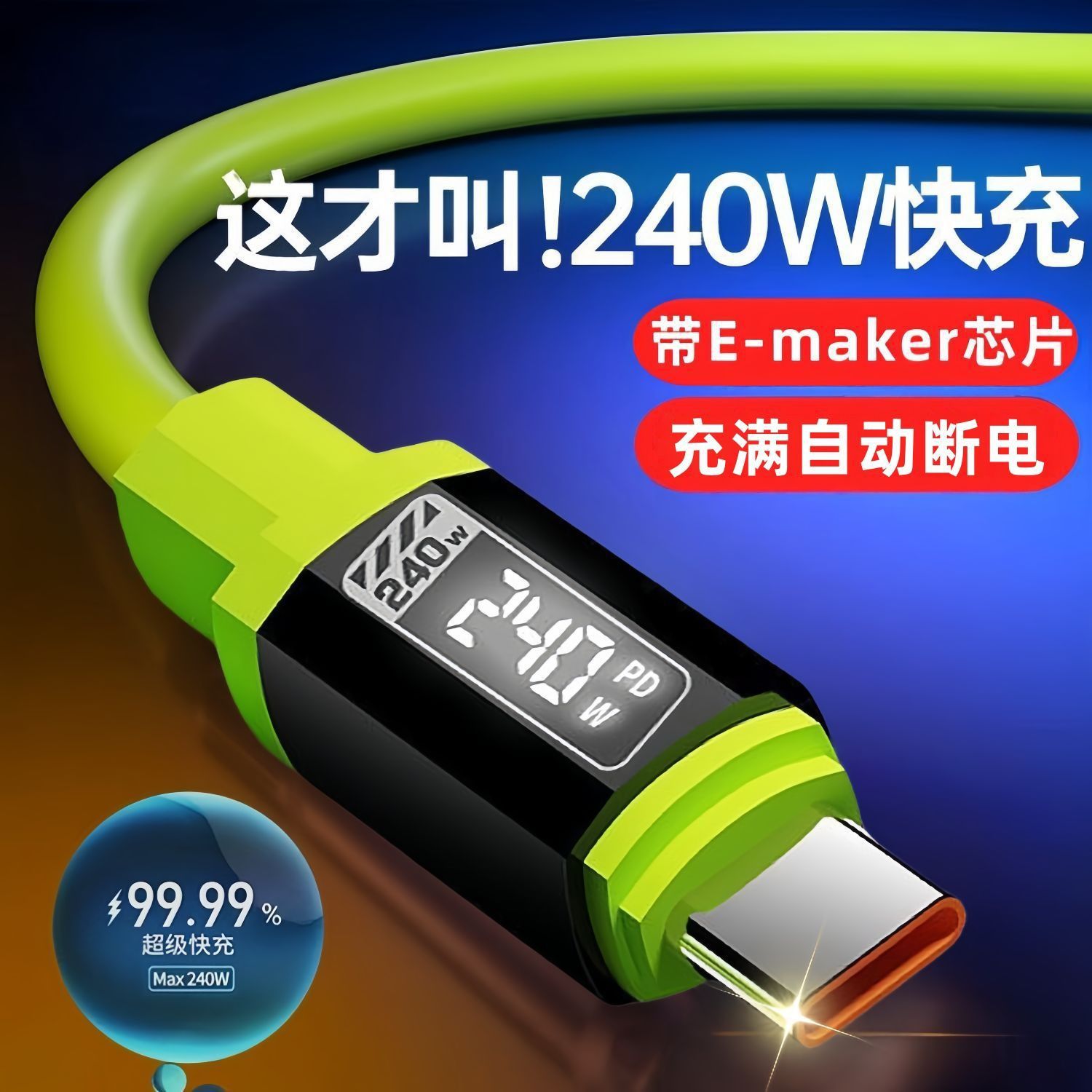 240W超急速充電携帯電話データケーブル真シリコンPD3.1変色呼吸灯急速充電車載急速充電延長