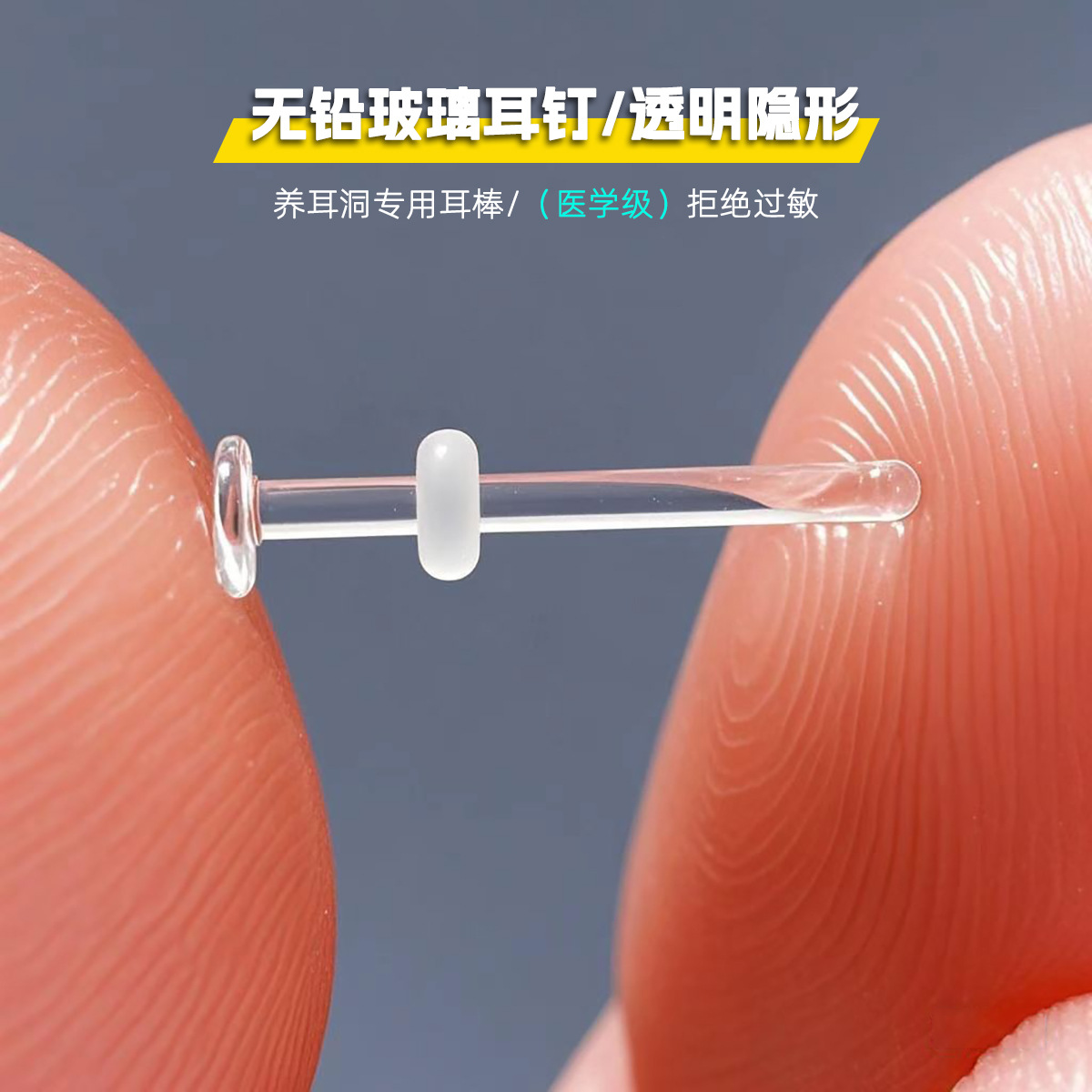 1箱に入った耳穴ガラスピアス鉛フリー透明ガラスピアスピアス