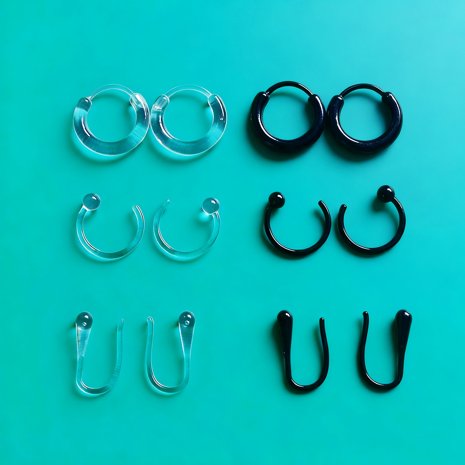 袋入り抗過形成凹面小型フライングソリッドリップネイルソフトガスケット固定リング食品グレードのシリコーン耳ピアスフライングソリッドベリーパン