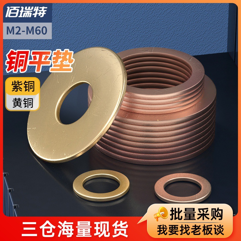 銅平スペーサーワッシャー純真鍮平スペーサー華司中間子金属平パッドM3M4M5M6M8M10M12-M20