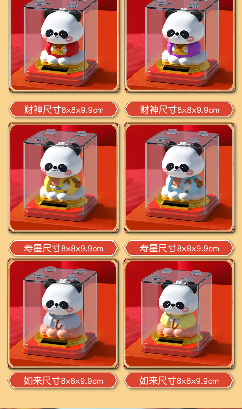 太陽はうなずいて創意的なパンダの車に飾られたデスクトップの店舗に飾られた家庭の装飾品が豊かで可愛いパンダです。