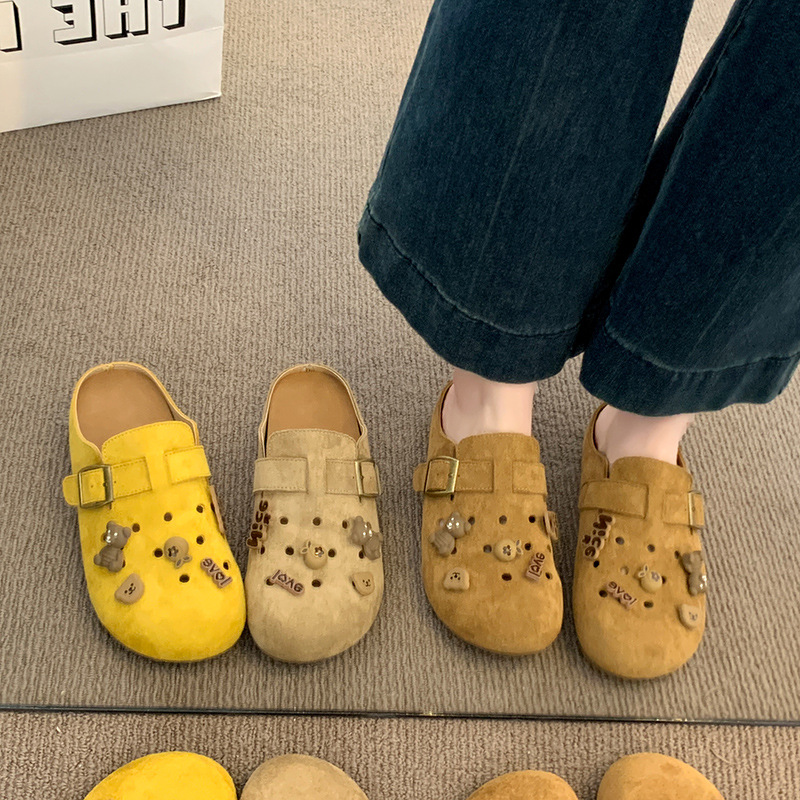 2025新型夏包頭半スリッパファッションカジュアル怠け者一足にかかとのない豆靴フランススリッパ