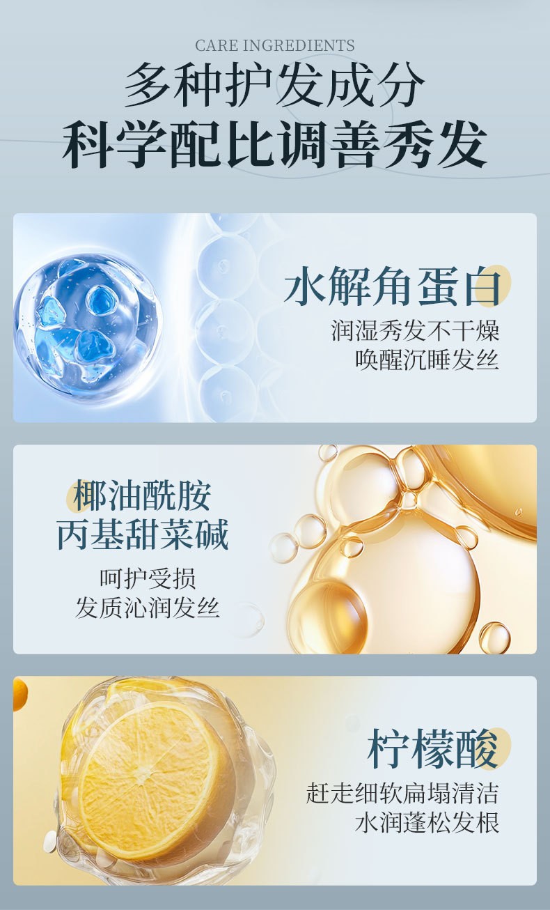 軽やかなシャンプーはさわやかで清潔な深層洗浄シャンプーはオイルをコントロールして髪を潤します。