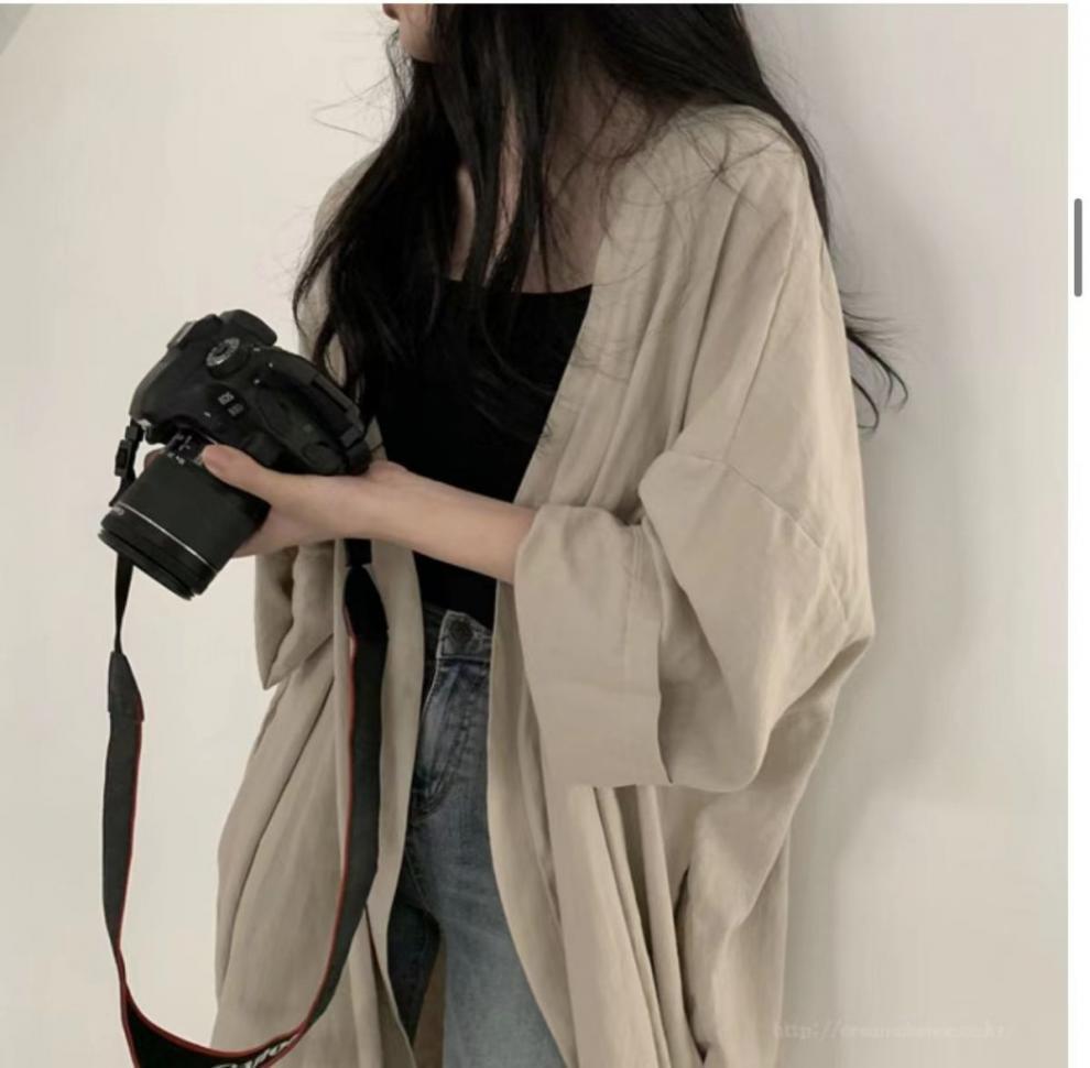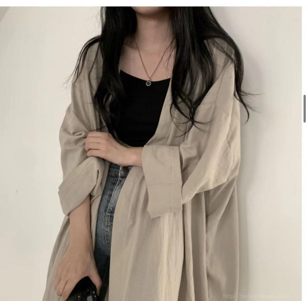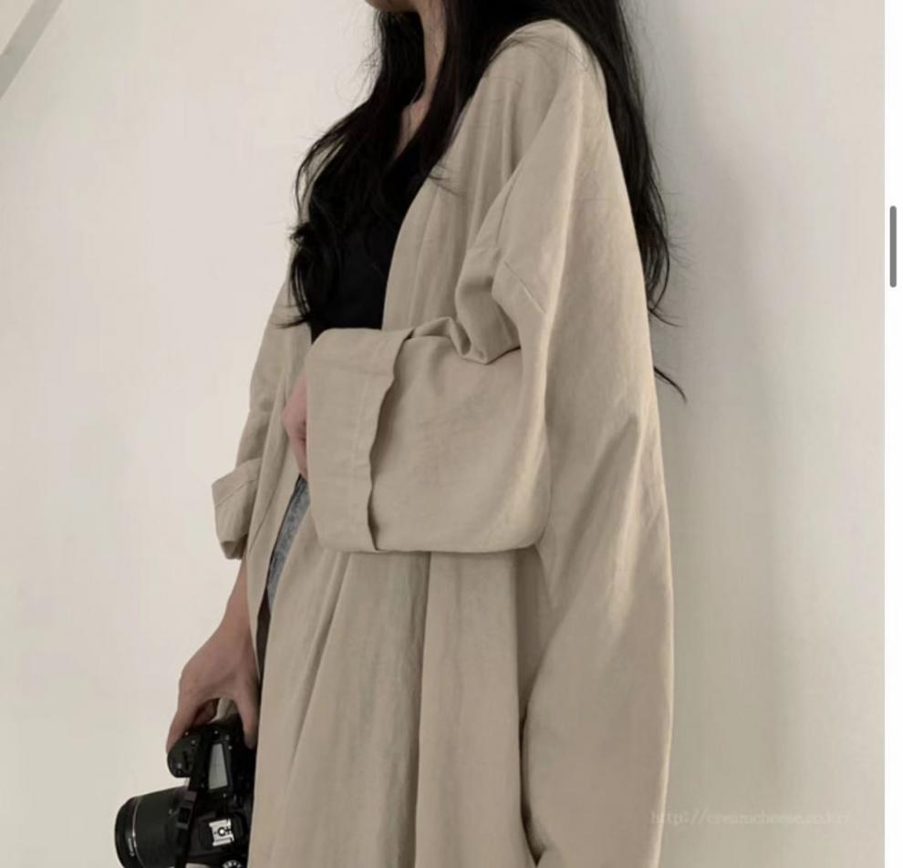 綿麻の綿のコートの秋の薄いタイプのシャツはゆったりしていて痩せています。