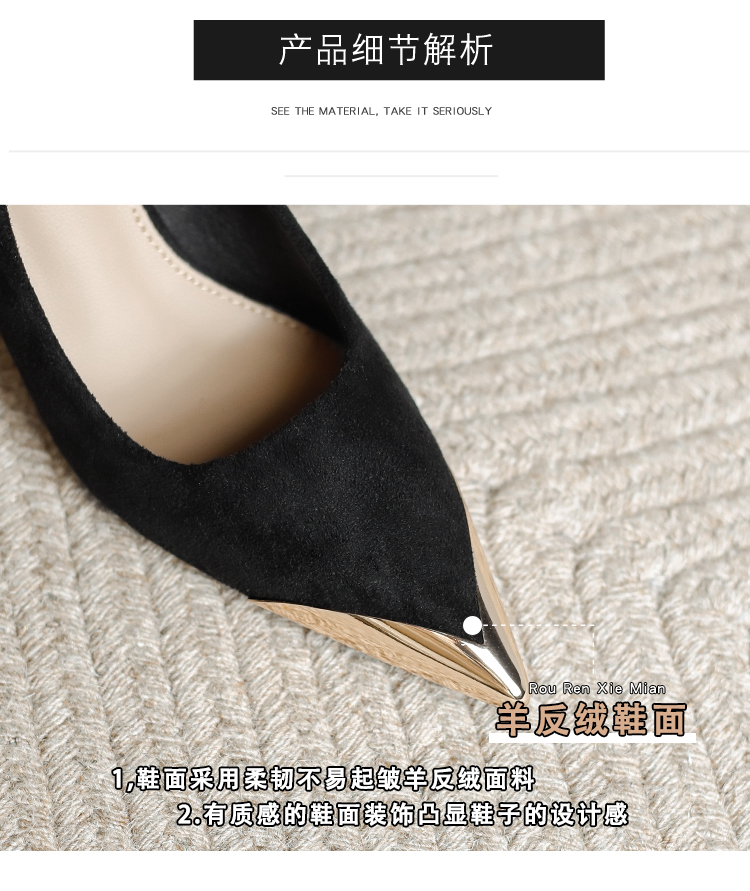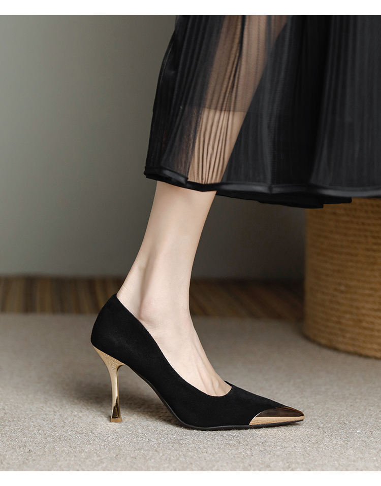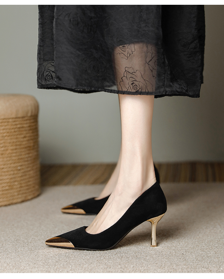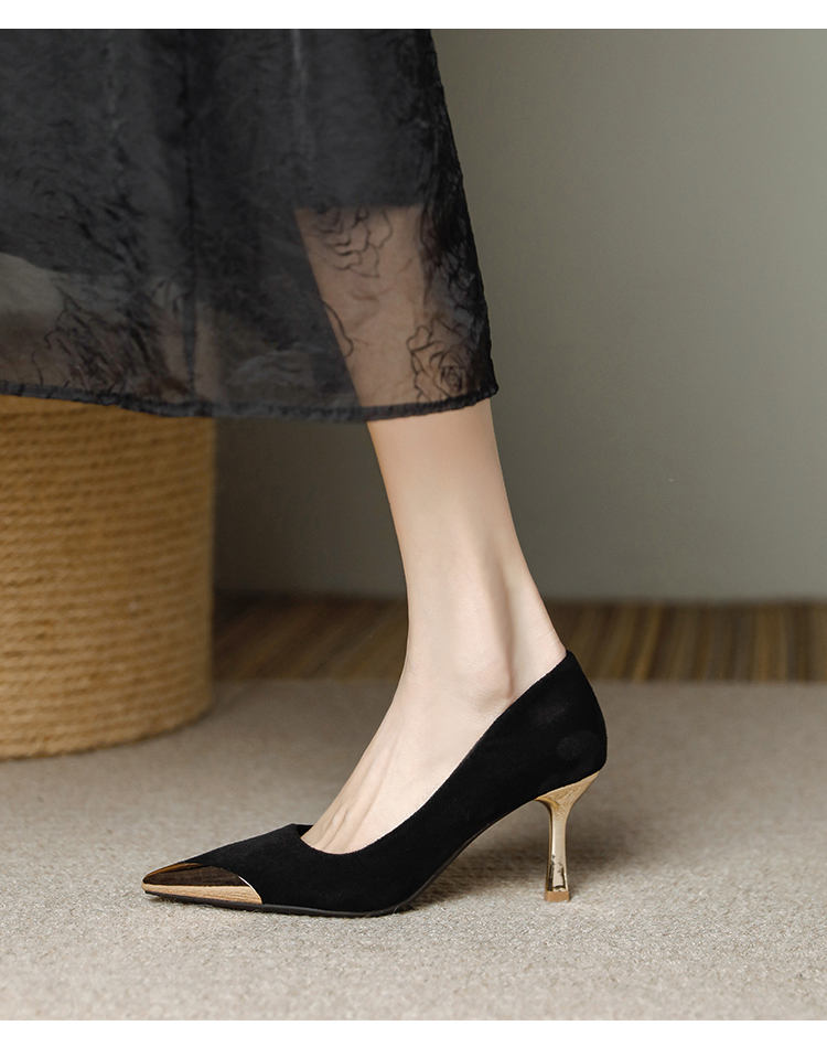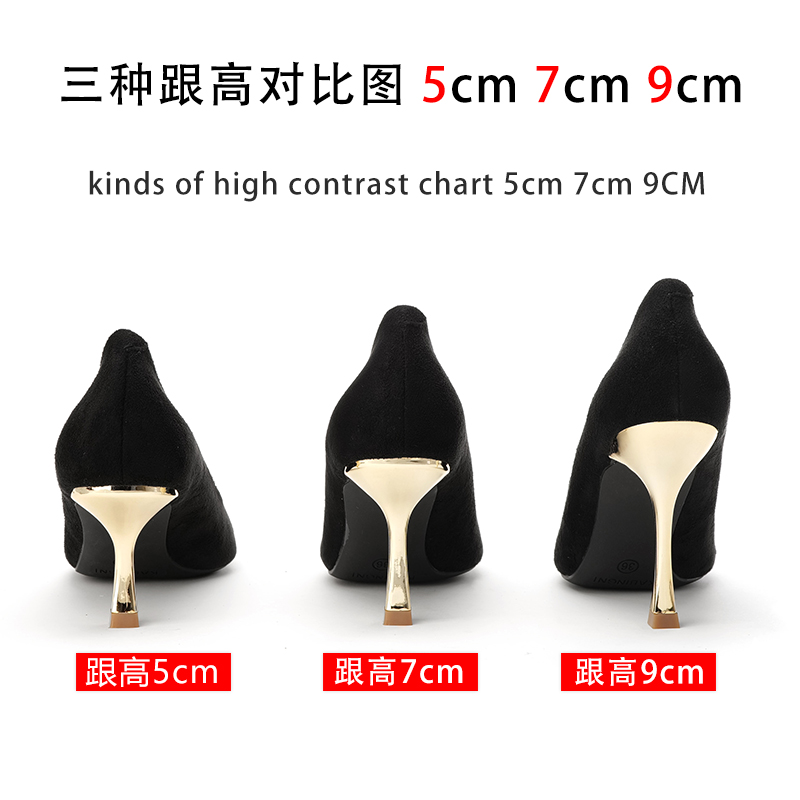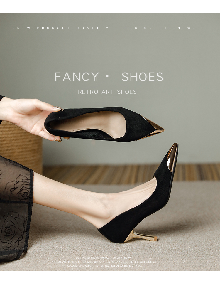 ハイヒールの女性2025年秋冬の新型の細いヒールの先の黒い夜の靴の職業の仕事の靴のフランスの靴