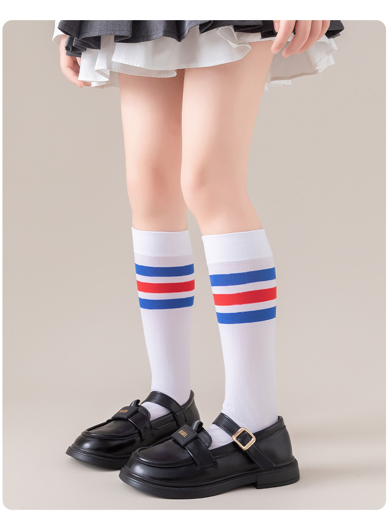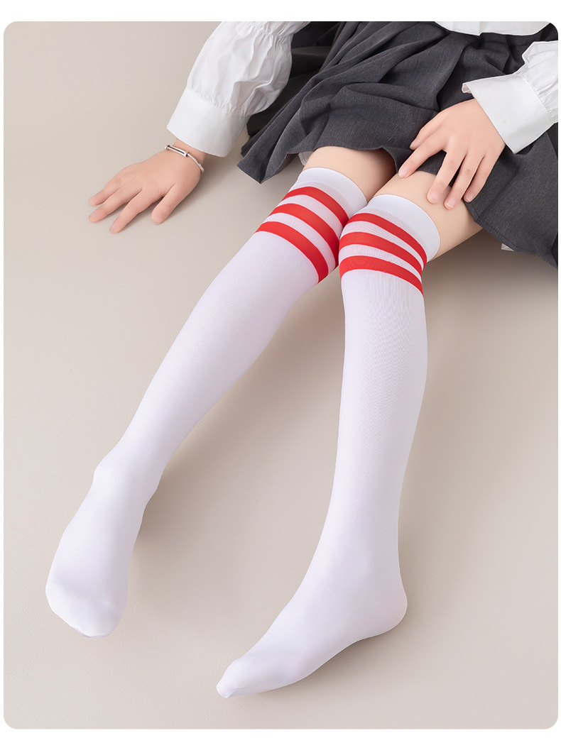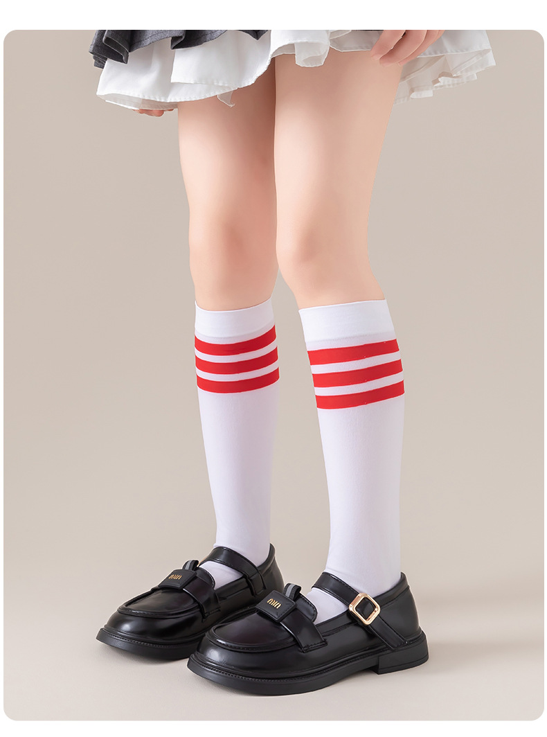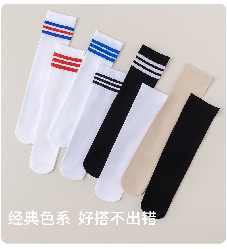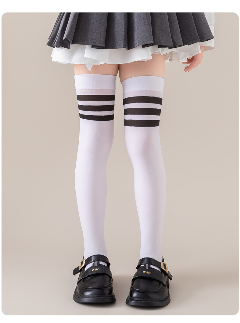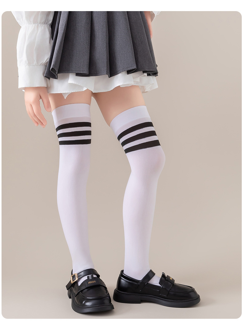 黒と白のJK風の中の筒の靴下の日本の膝の靴下の微圧はやせている足の靴下の女の子の長い足の靴下のストライプの運動が通用します。