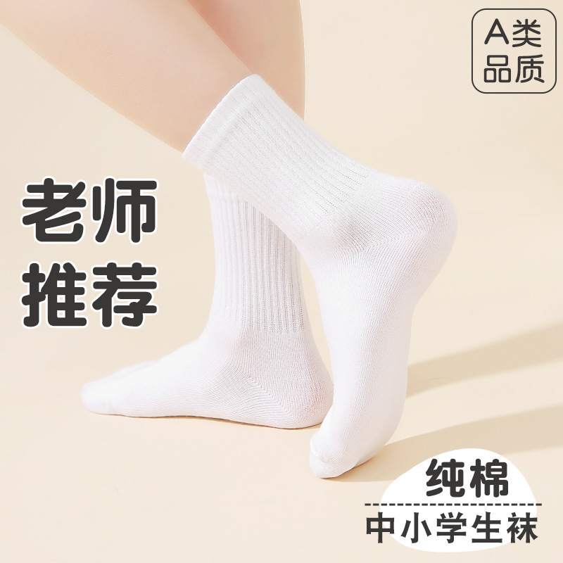 秋冬新作子供用綿靴下、白い学生靴下、四季対応純綿スポーツミッドカーフ靴下、防臭、吸汗、通気性靴下