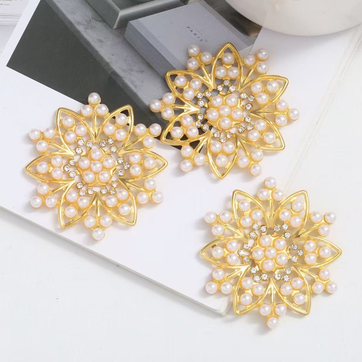 古风diy饰品配件 50毫米金属镶珍珠点钻冰雪花朵花盘圆片 diy材料