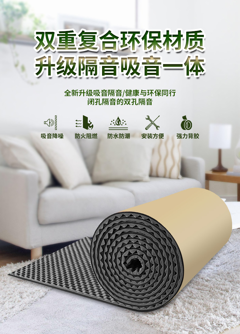 防音綿自己粘着壁体超強力消音騒音低減工事壁貼り部屋防音板難燃卸売り消音材料