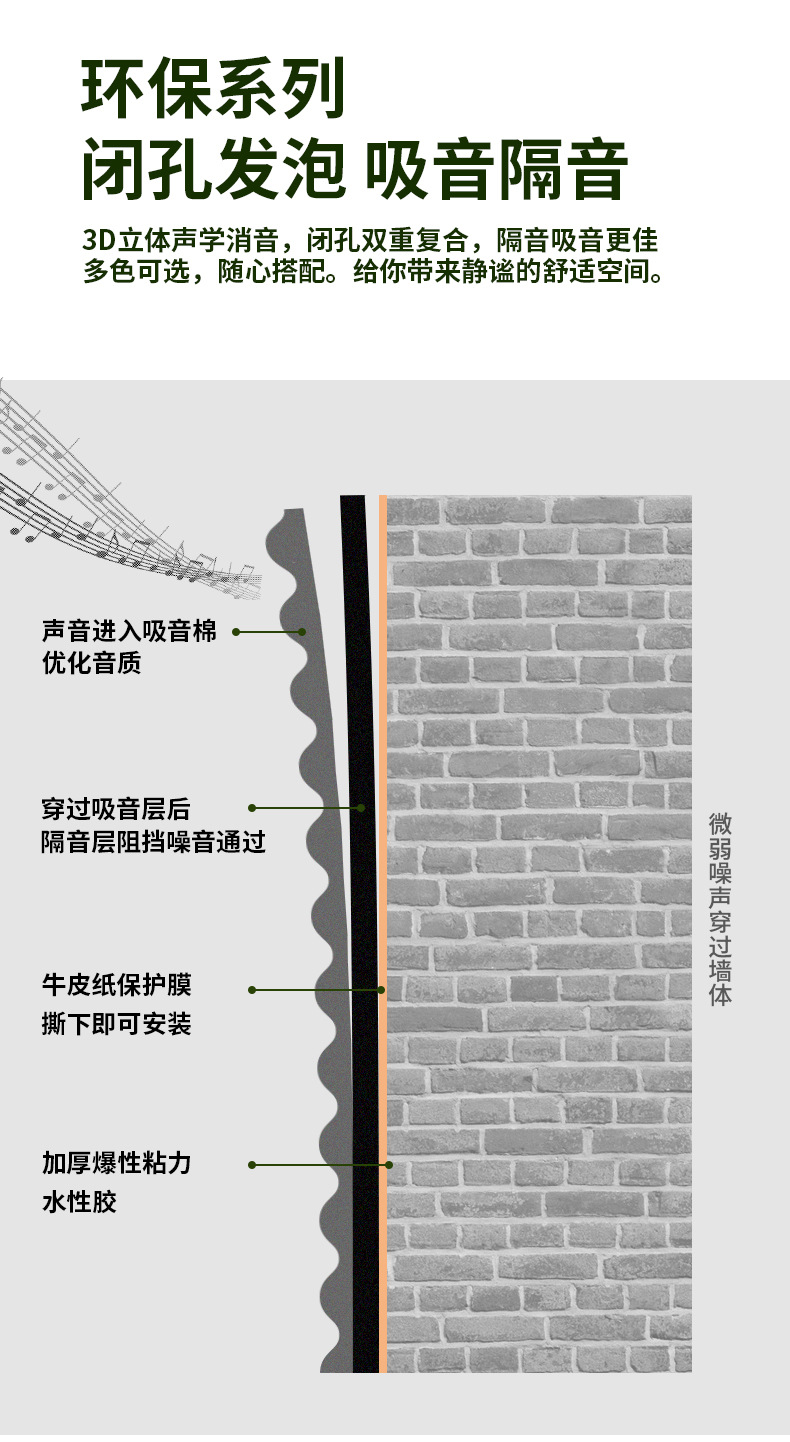 自己接着防音卵綿環境保護難燃直播間訓練室壁面消音材バックゴム消音綿