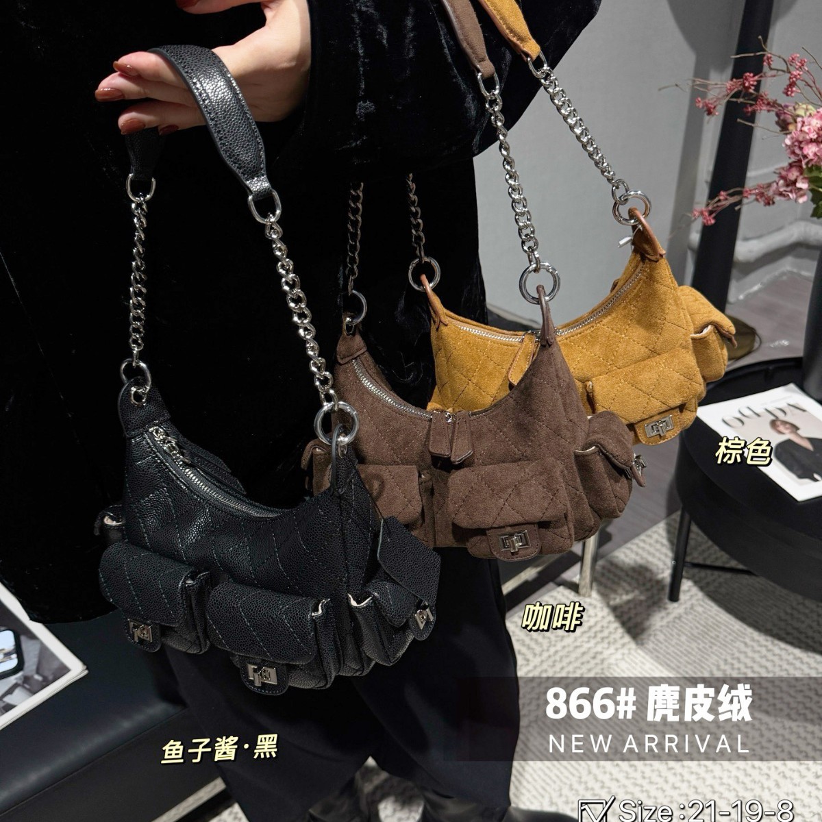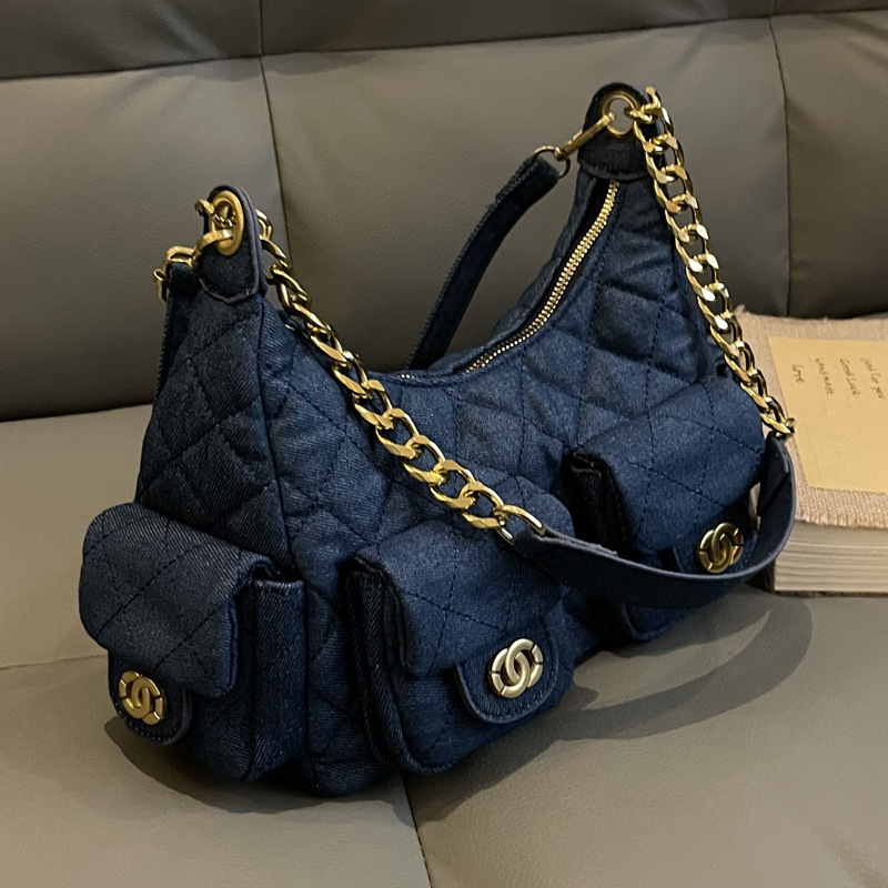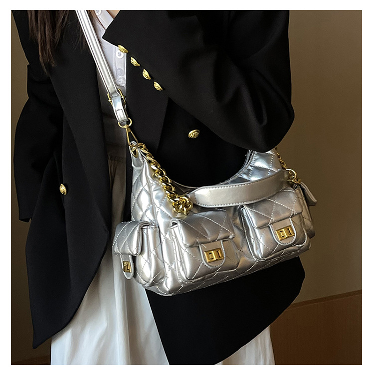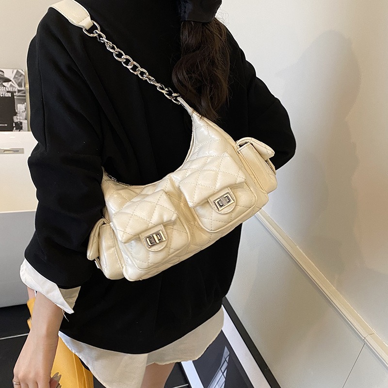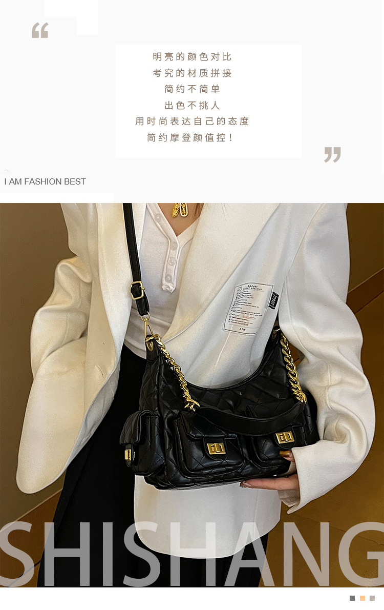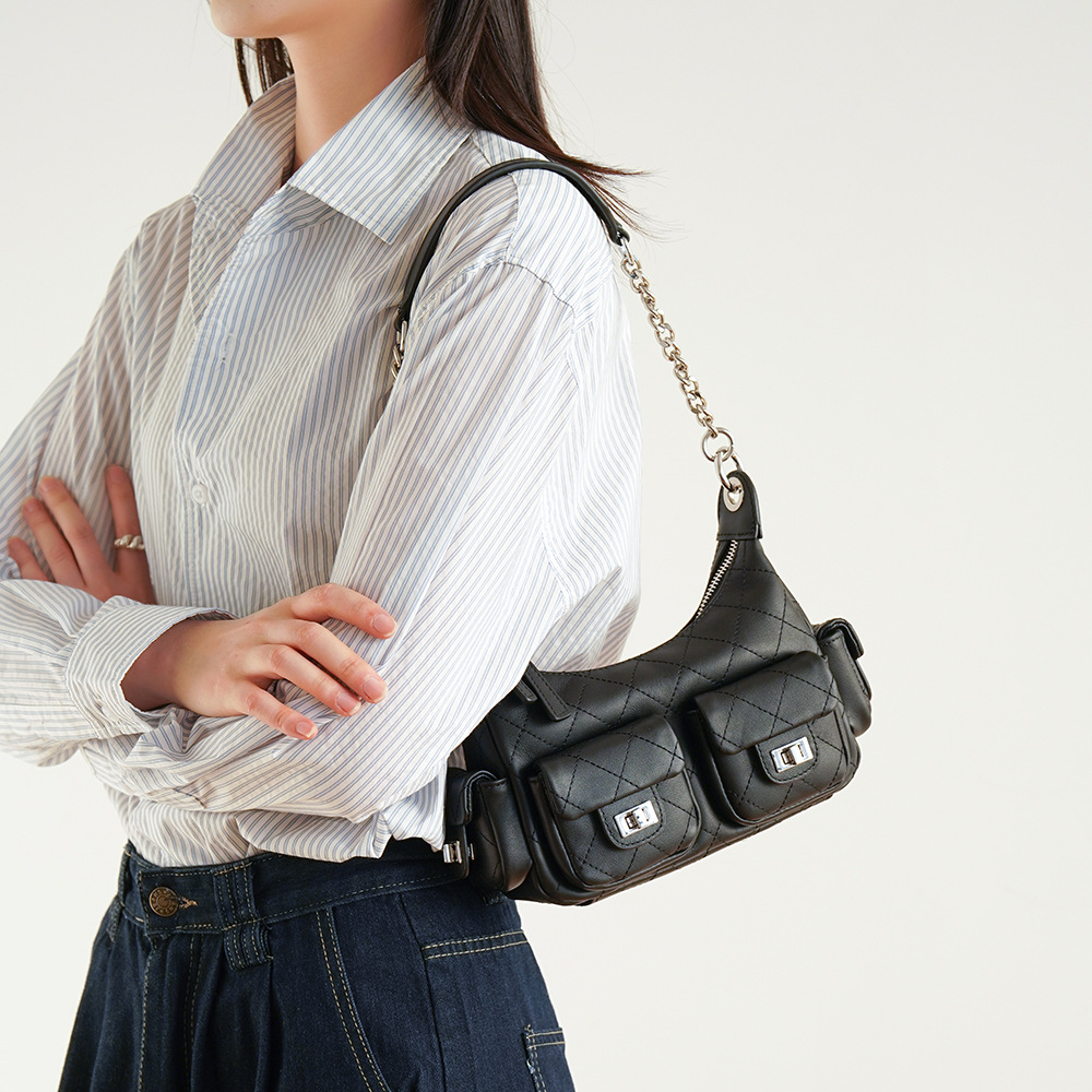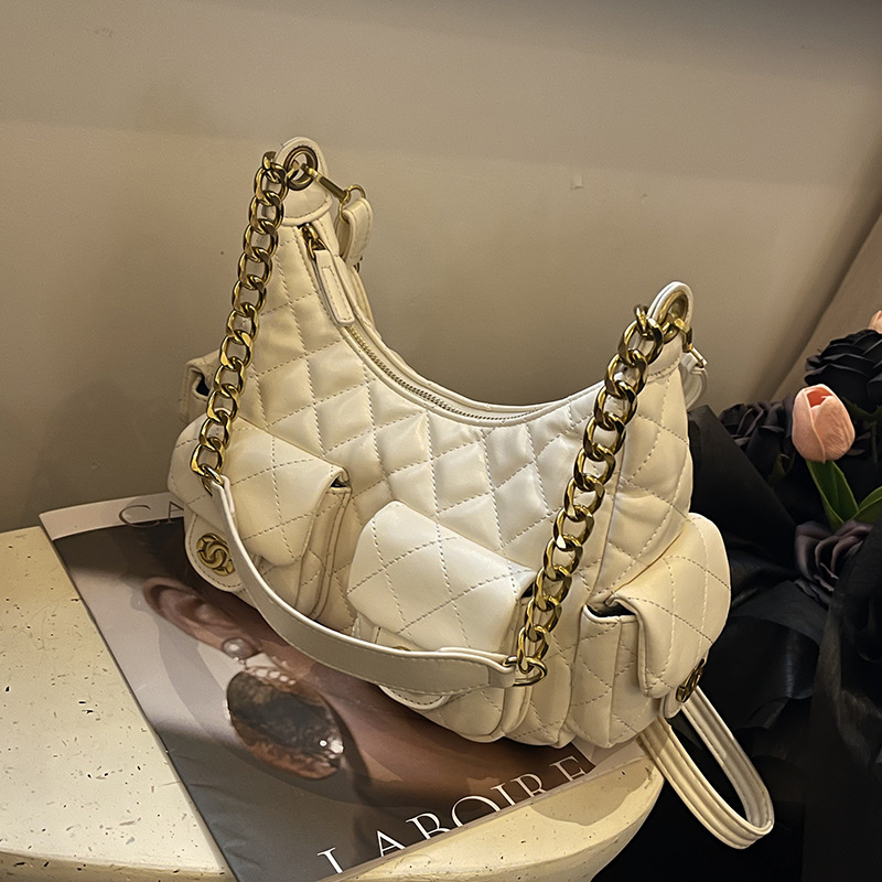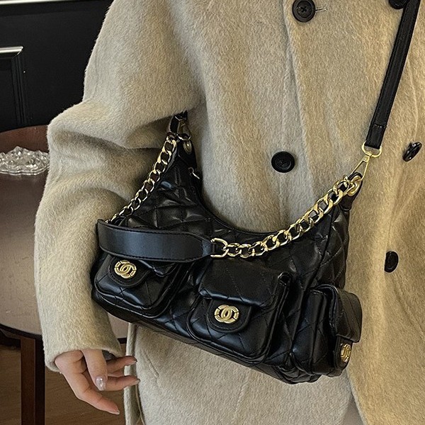 2025新款多口袋女包包链条小香风hobo嬉皮包时尚潮流单肩斜挎女包