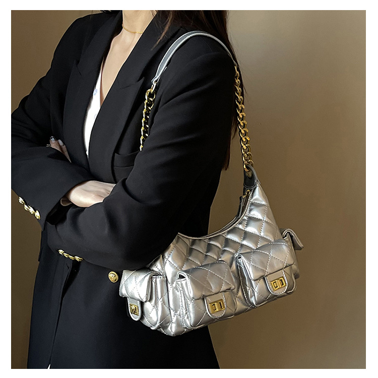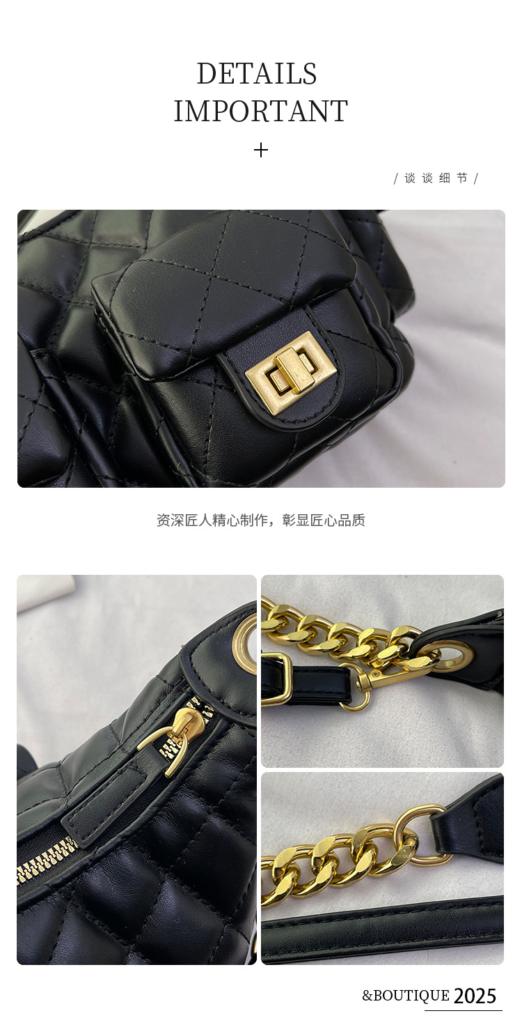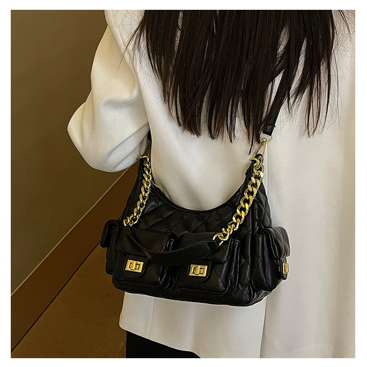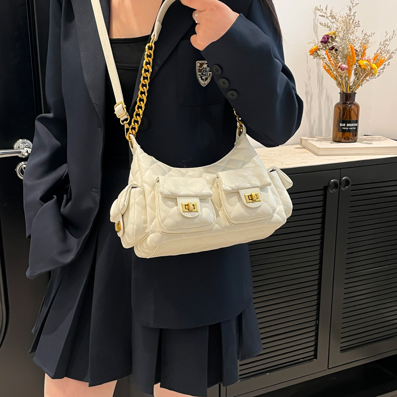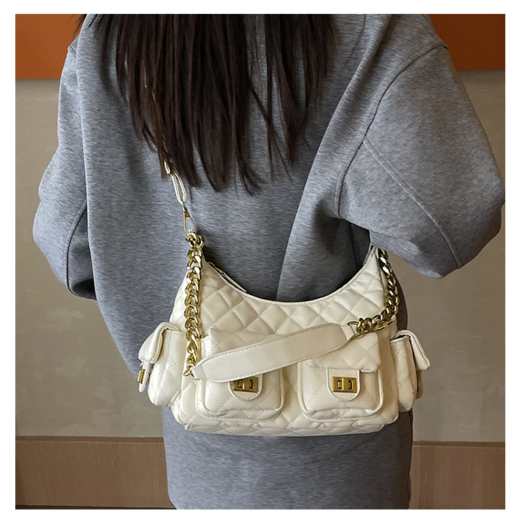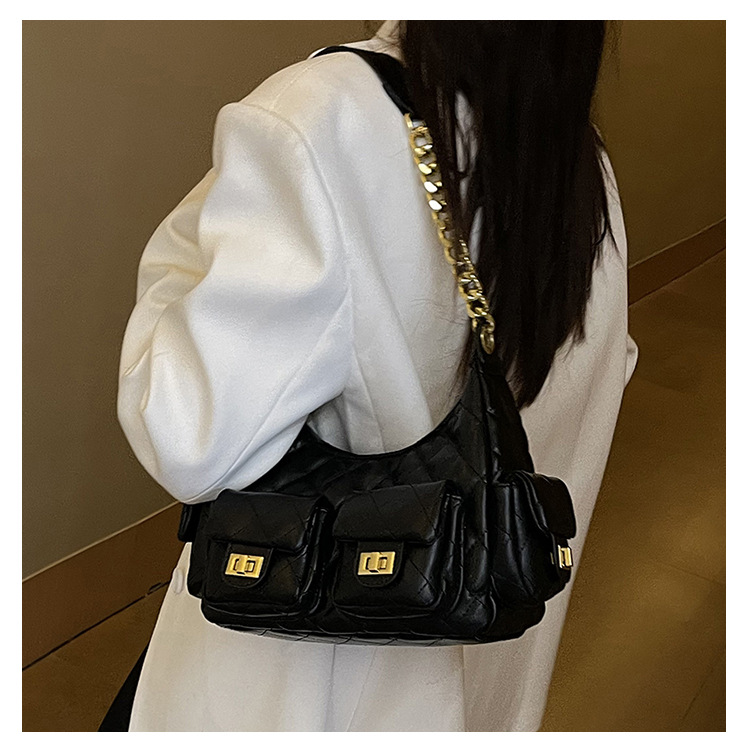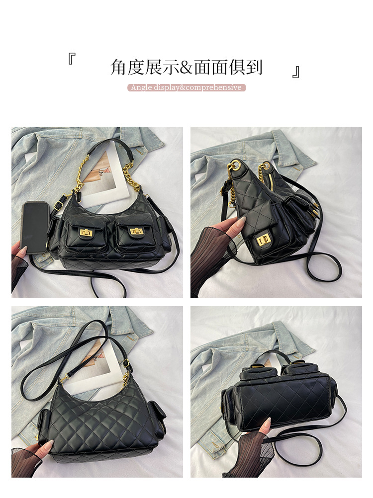 大衆デザイン高級感多ポケット菱格脇下バッグファッションチェーン小香風シングルショルダーバッグ通勤潮