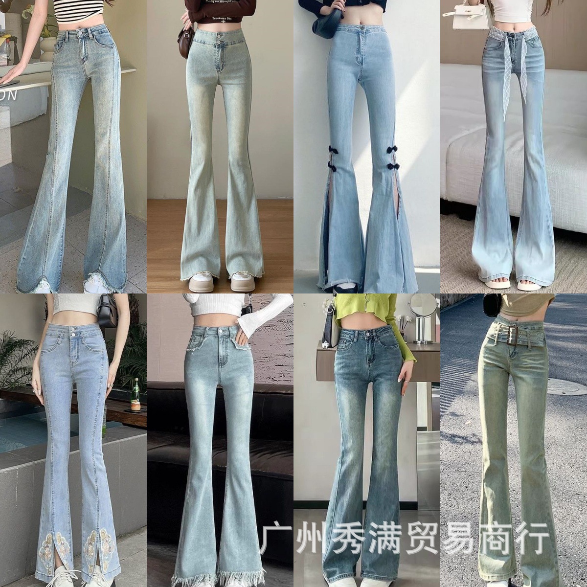 ファッショナブルなマイクロフレアジーンズ、伸縮性のある女性用ハイウエスト痩身レトロフロアレングスパンツ、フレアパンツ、フロアレングスパンツ