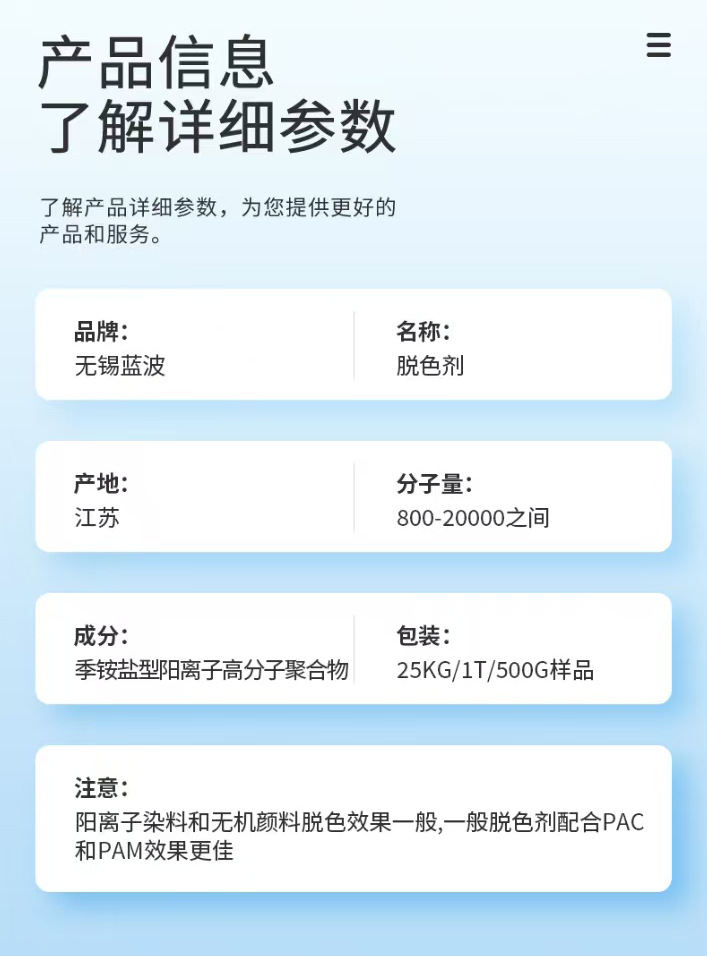 ブルー波BWD-03Aシリーズ脱色フロック染料捺染工業廃水脱色剤水処理フロック剤