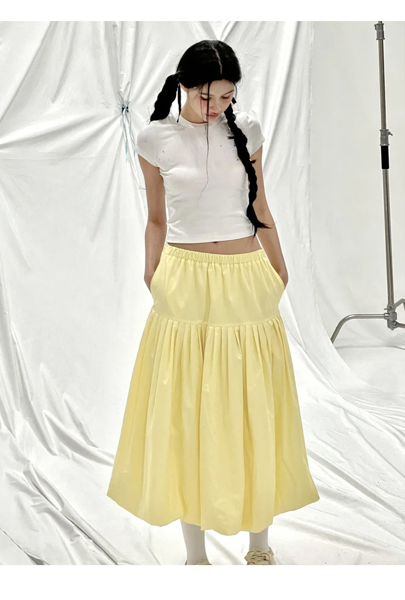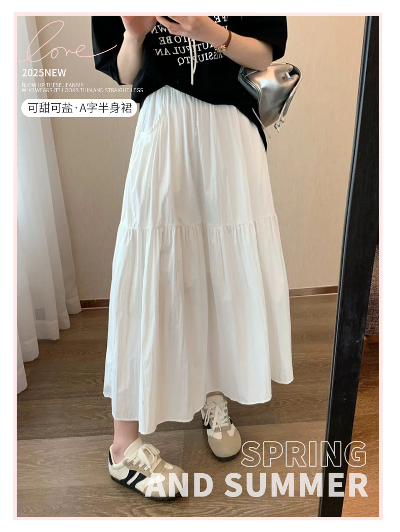 【ポケットタイプ】蓬蓬蓬ケーキスカート女性夏2025新型の怠惰な風が中丈スカートの白いスカートを大きく振っている