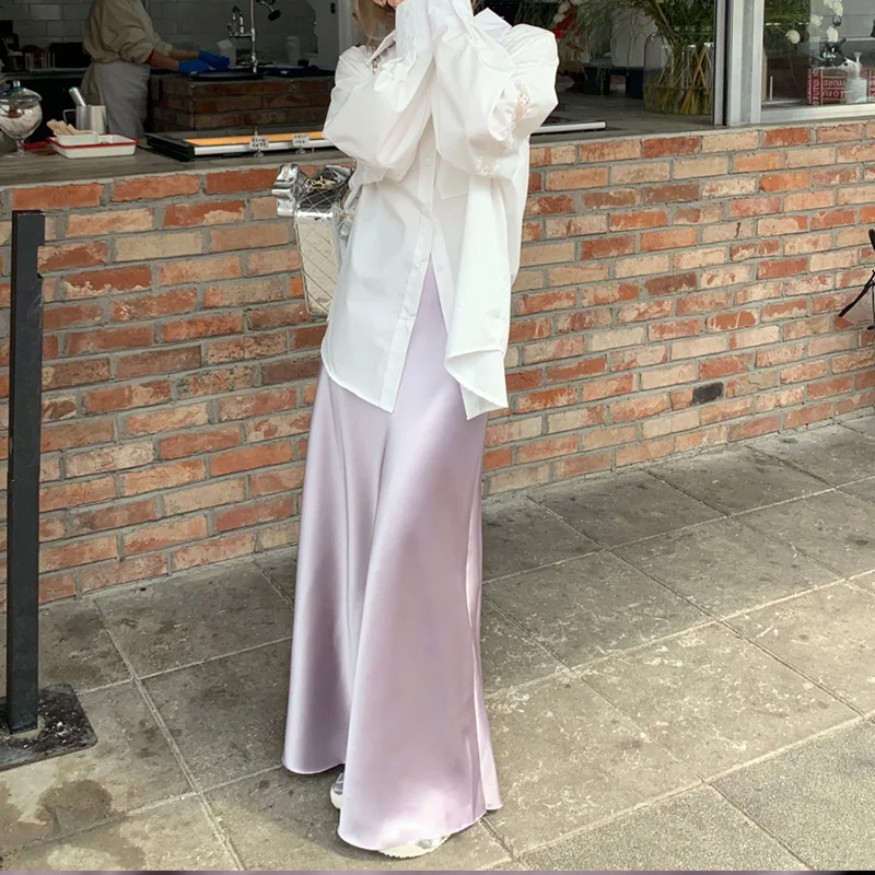 ラディッシュダッド フィッシュテールスカート レディース 春夏 ロングスカート 2026 ハイウエスト ドレープ感 着痩せ効果 ミドル丈 サテン アセテートスカート