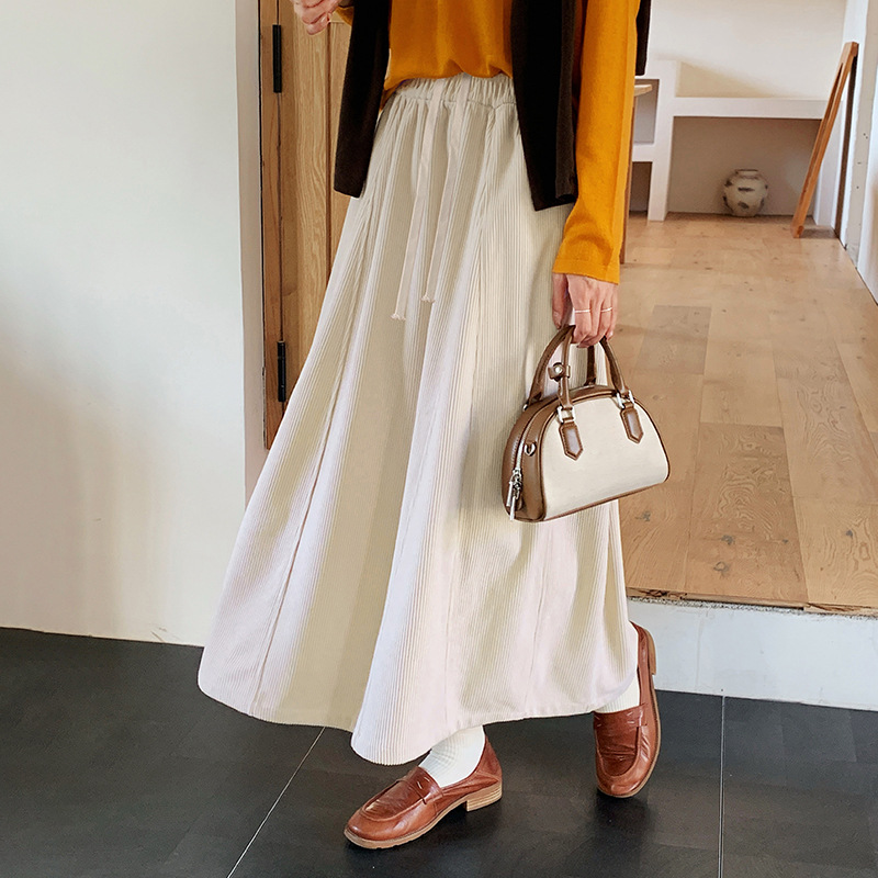 萝卜大叔时尚细坑条系带南瓜裙子时尚百搭大摆伞裙灯芯绒半身裙女