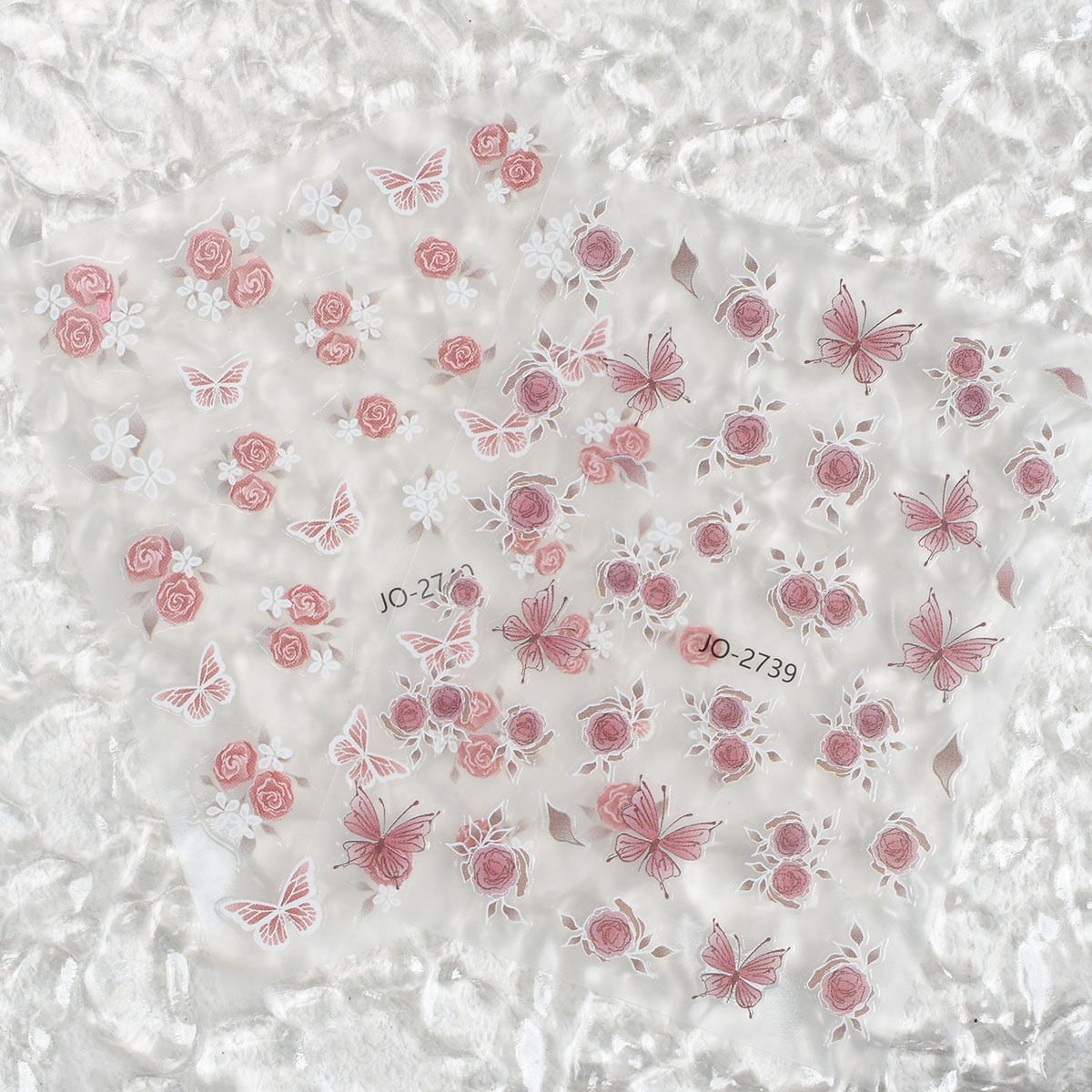 新商品の花の蝶の純欲のネイルシールのピンクの青い花の手描きの蝶の甘くて可愛いです。