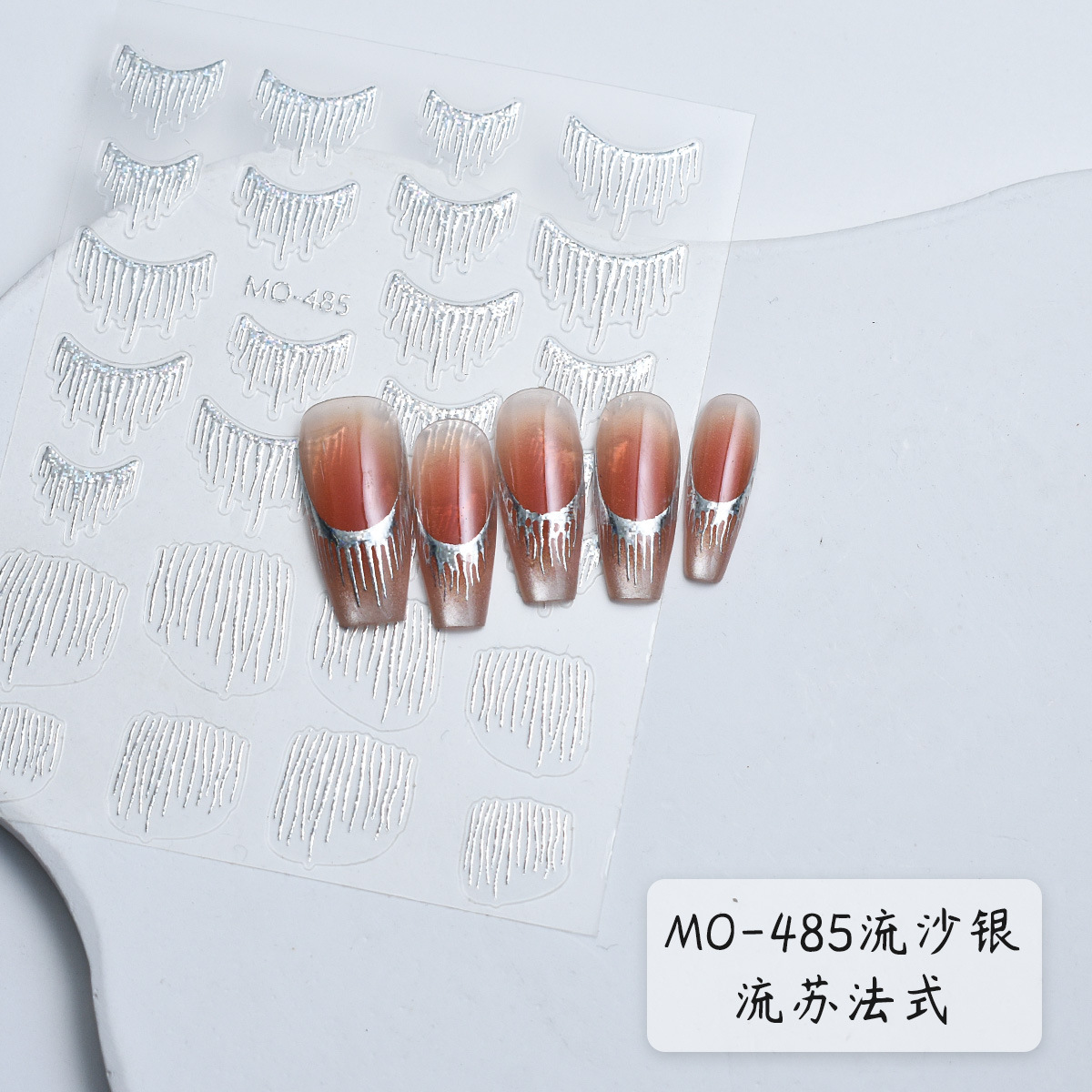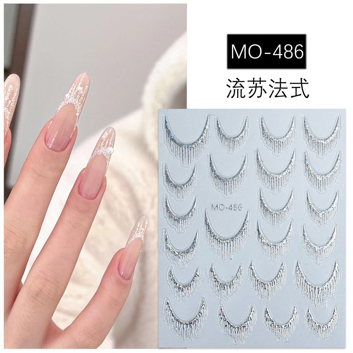 ネット赤砕ドリルネイルシールキラキラ銀ブロック曲線フレンチストライプ曲線軽贅沢爪浮き彫りネイルシール