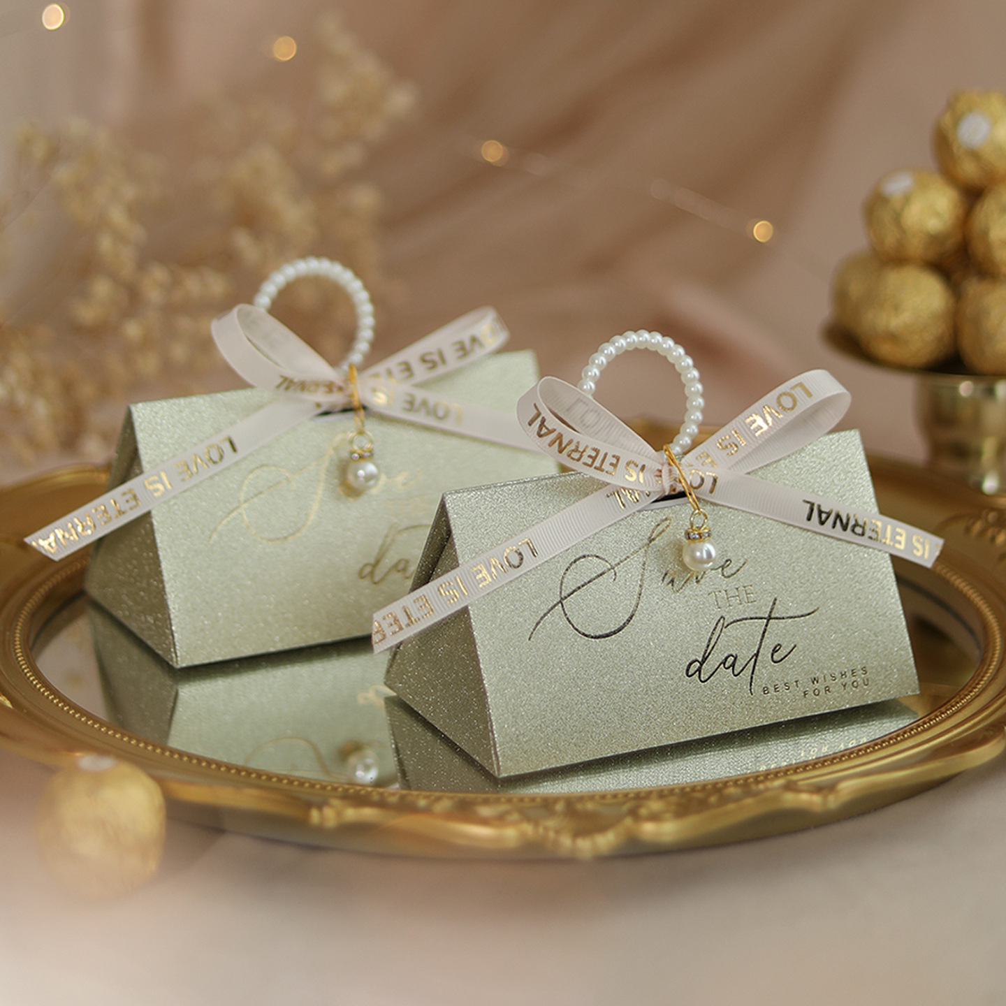 ウェディング金葱糖箱結婚喜糖箱創意ins風結婚式糖果紙箱ケース喜糖袋ギフトボックス