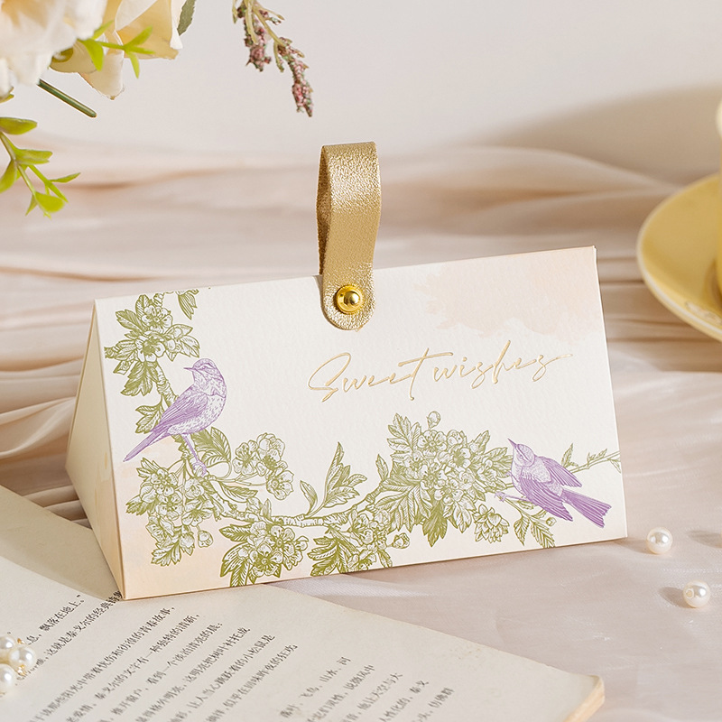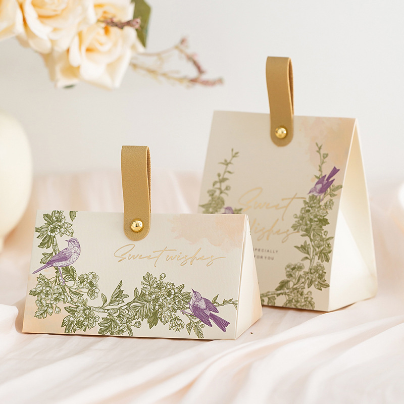 クリエイティブシャンパン色の手提げ婚約結婚結婚式の三角喜糖箱木環お土産魚尾紗喜糖箱