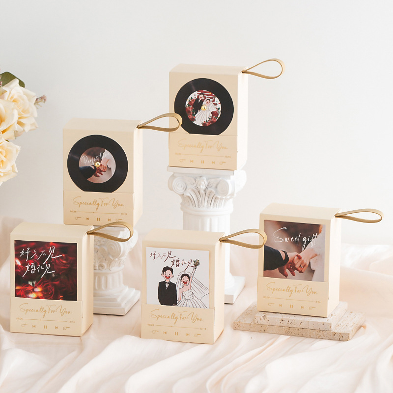 結婚テーブルの砂糖箱の高級感の結婚式の手持ちのシンプルなキャンディー箱の空箱の個性の創意のレコードの喜糖箱の砂糖袋