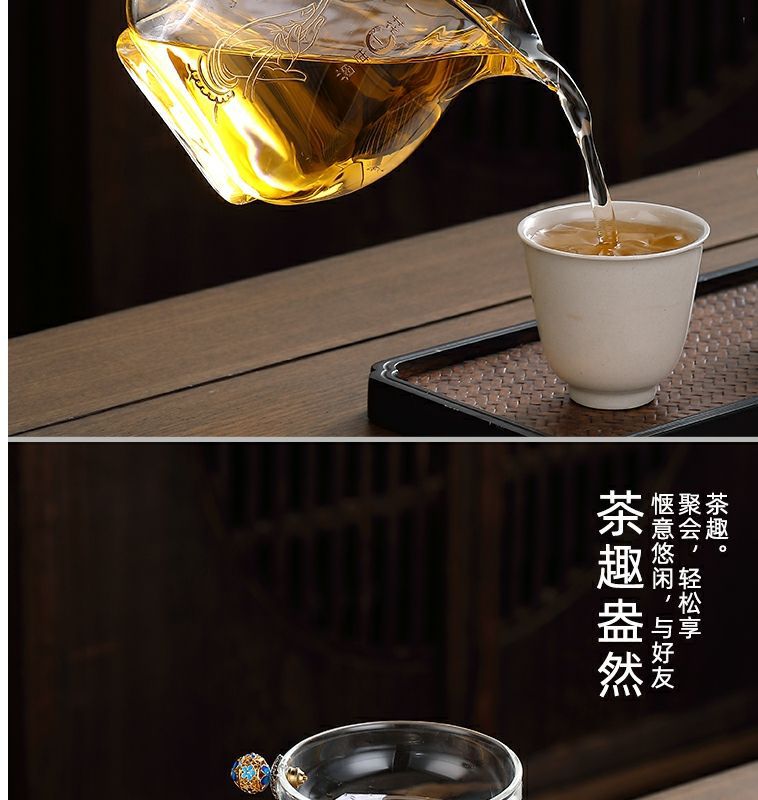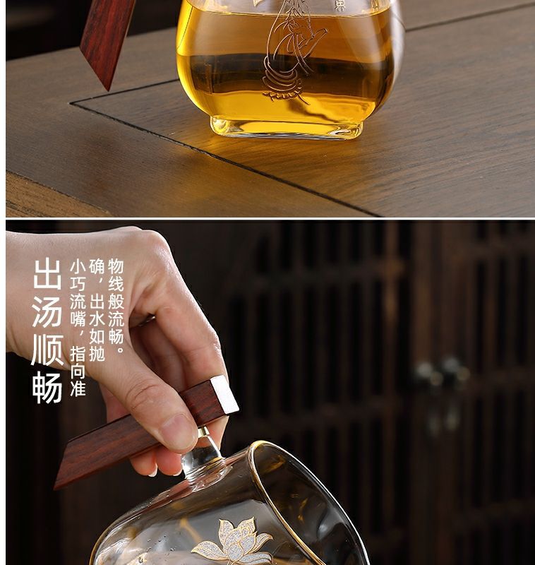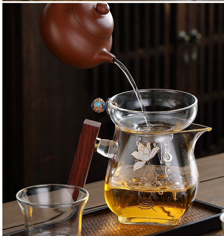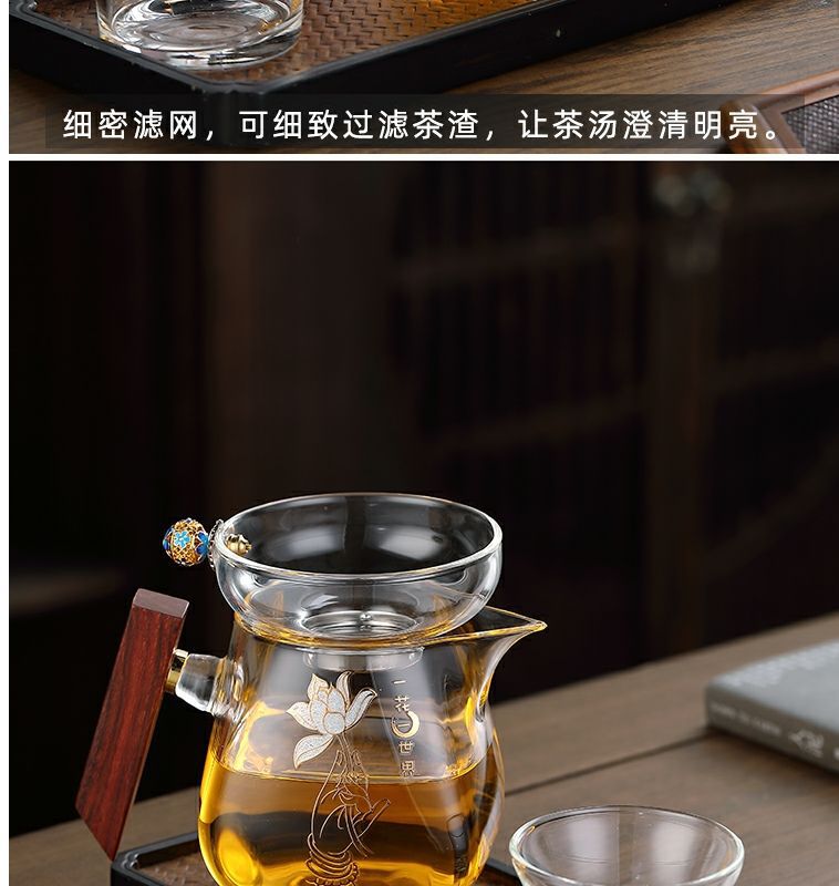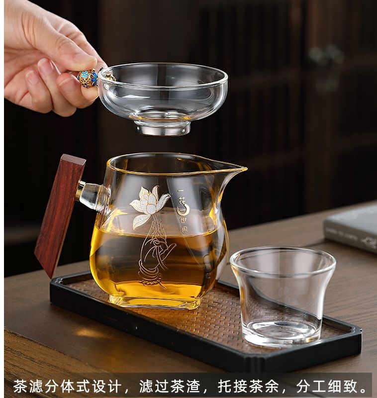 逸杯のティーポットを入れます。ワンボタンでお茶を濾過します。家庭用オフィスの高級ガラス茶器セットです。