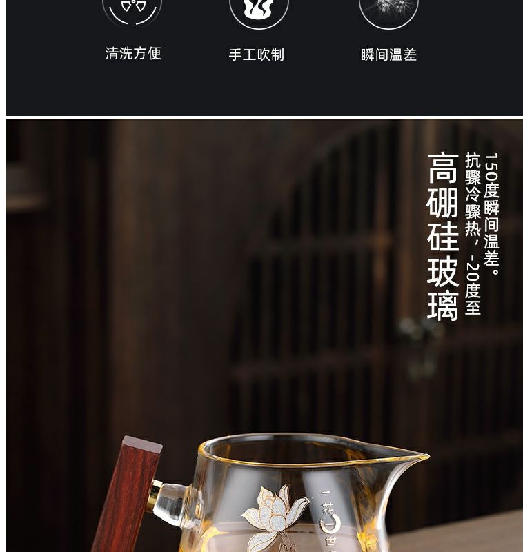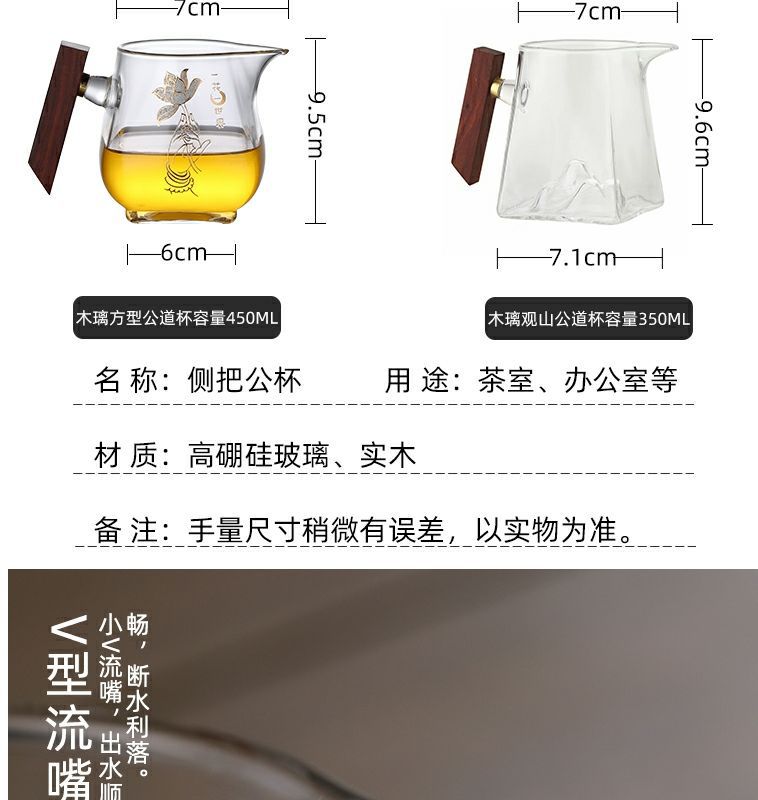公道杯ガラス公杯茶漏れ側は分茶器を厚くして耐熱大容量の四方高級分茶杯を厚くします。