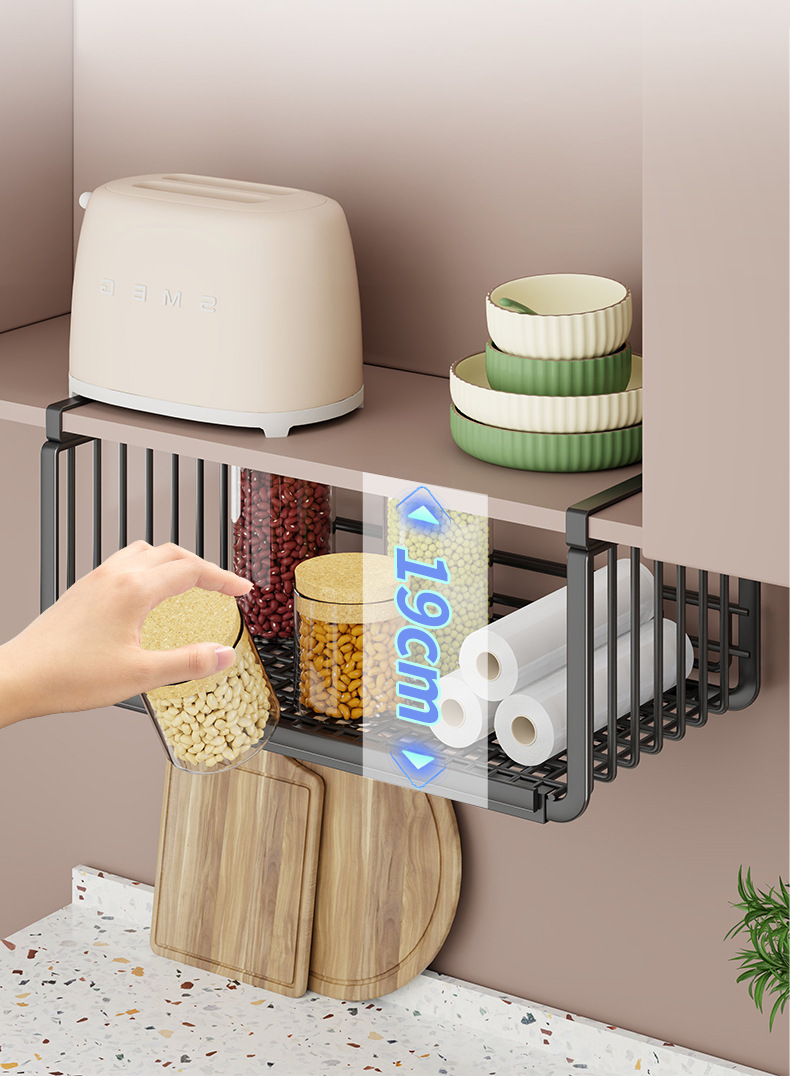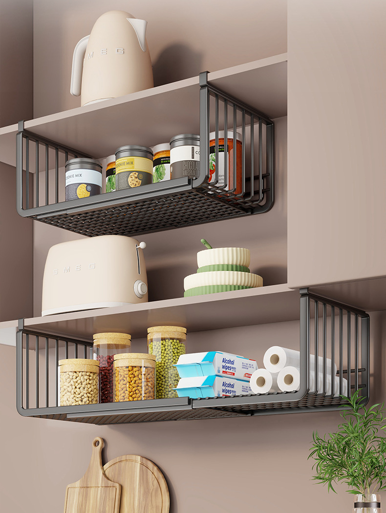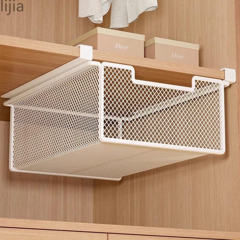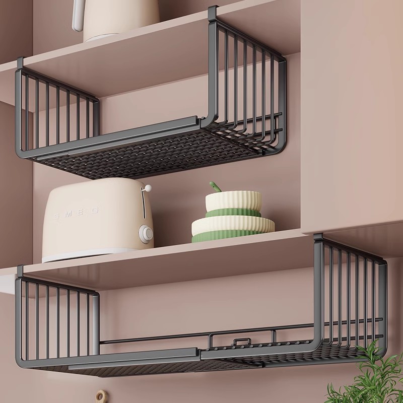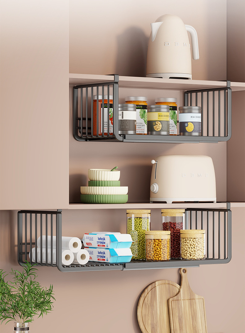 厨房吊柜下挂置物架橱柜悬挂抽拉式收纳神器衣柜收纳桌下分层挂篮